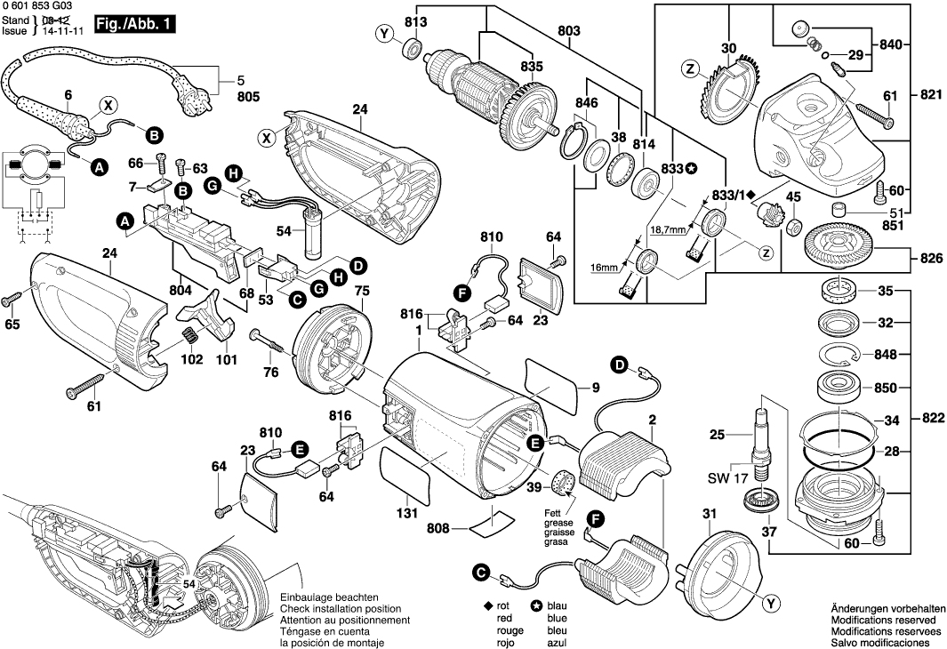 Vous trouverez ici toutes les pièces et dessins disponibles du 'Bosch 0601856G03 ( GWS26-230JBV )'. De là, vous pouvez commander directement toutes les pièces souhaitées. De nombreuses pièces doivent être commandées auprès du fabricant, selon la marque, cela prend une à quatre semaines. Toutes les informations dont nous disposons se trouvent sur notre site Web, nous ne pouvons pas vous conseiller sur ce dont vous avez besoin, pour cela vous devrez retourner la machine pour réparation. Veuillez noter ce qui suit lors de la commande: