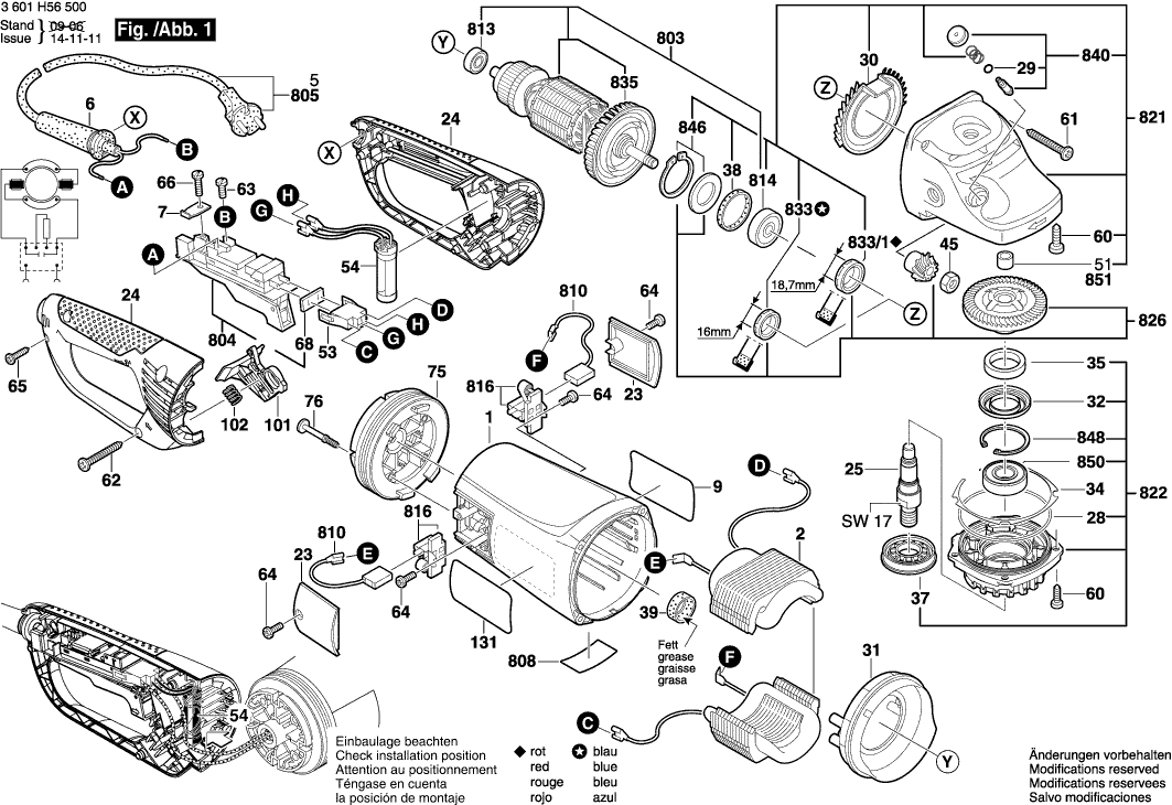 Vous trouverez ici toutes les pièces et dessins disponibles du 'Bosch 3601H56500 ( GWS26-230JBV )'. De là, vous pouvez commander directement toutes les pièces souhaitées. De nombreuses pièces doivent être commandées auprès du fabricant, selon la marque, cela prend une à quatre semaines. Toutes les informations dont nous disposons se trouvent sur notre site Web, nous ne pouvons pas vous conseiller sur ce dont vous avez besoin, pour cela vous devrez retourner la machine pour réparation. Veuillez noter ce qui suit lors de la commande: