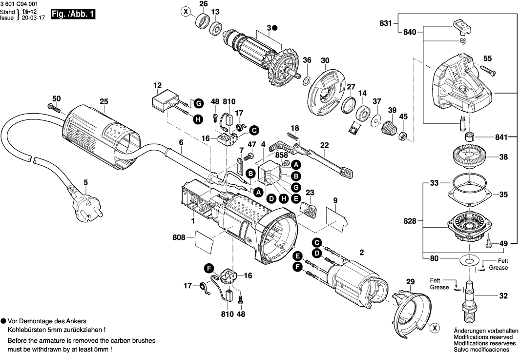 Liste de pièces de rechange des Bosch 3601C94001 ( GWS750 )
