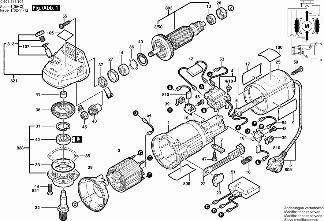 Liste de pièces de rechange des Bosch 0601343103 ( GWS9-125CM )