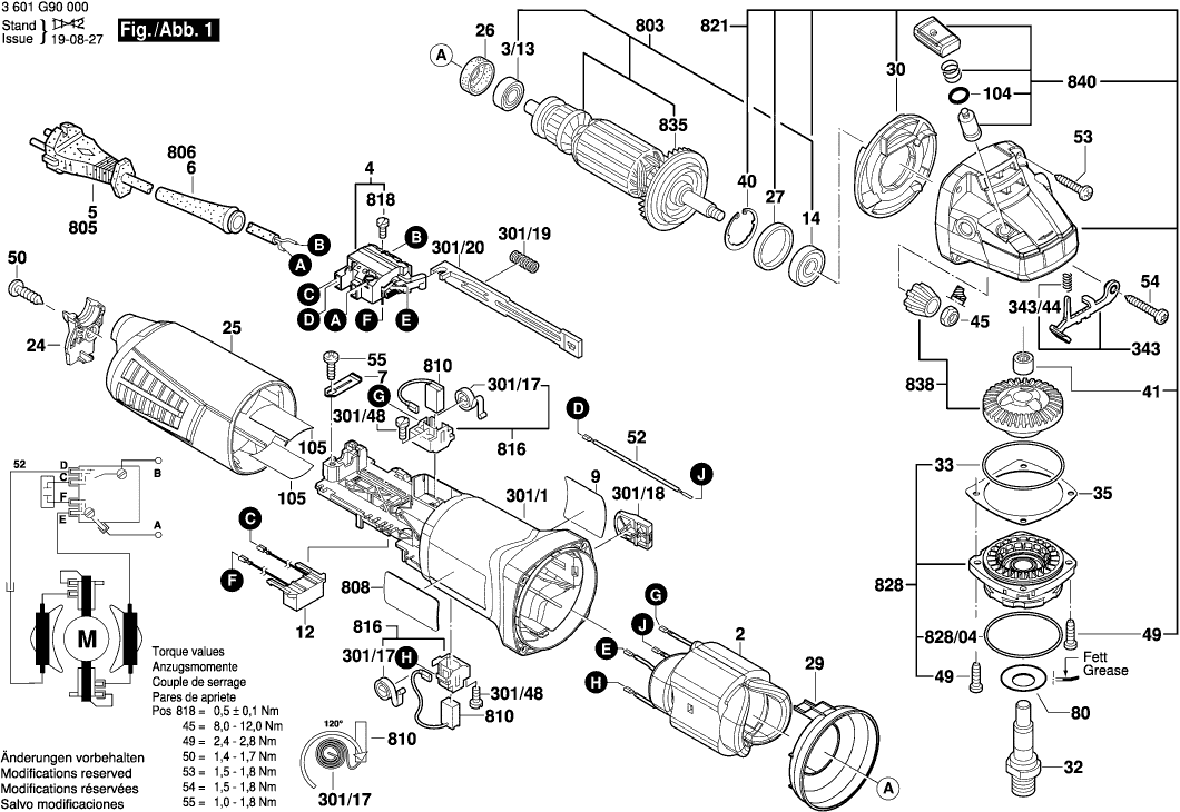 Vous trouverez ici toutes les pièces et dessins disponibles du 'Bosch 3601G91000 ( GWS9-125 )'. De là, vous pouvez commander directement toutes les pièces souhaitées. De nombreuses pièces doivent être commandées auprès du fabricant, selon la marque, cela prend une à quatre semaines. Toutes les informations dont nous disposons se trouvent sur notre site Web, nous ne pouvons pas vous conseiller sur ce dont vous avez besoin, pour cela vous devrez retourner la machine pour réparation. Veuillez noter ce qui suit lors de la commande: