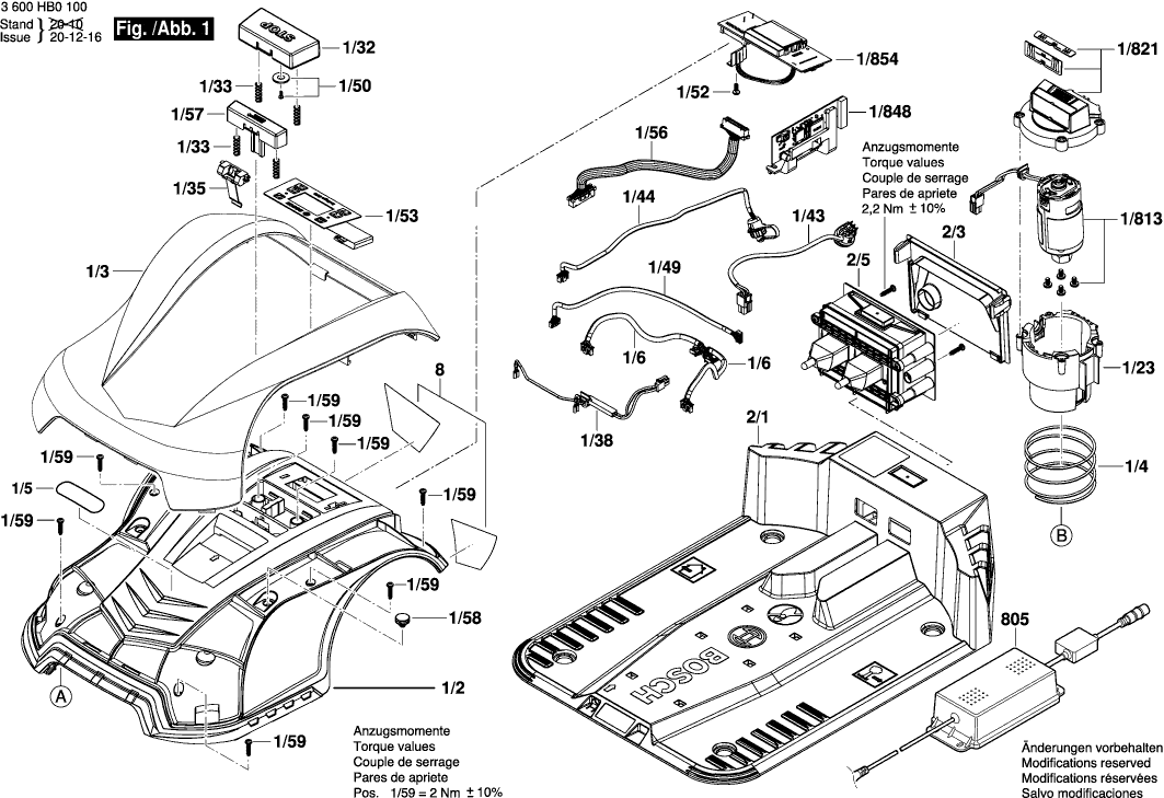 Vous trouverez ici toutes les pièces et dessins disponibles du 'Bosch 3600HB0101 ( INDEGO400CONNECT )'. De là, vous pouvez commander directement toutes les pièces souhaitées. De nombreuses pièces doivent être commandées auprès du fabricant, selon la marque, cela prend une à quatre semaines. Toutes les informations dont nous disposons se trouvent sur notre site Web, nous ne pouvons pas vous conseiller sur ce dont vous avez besoin, pour cela vous devrez retourner la machine pour réparation. Veuillez noter ce qui suit lors de la commande: