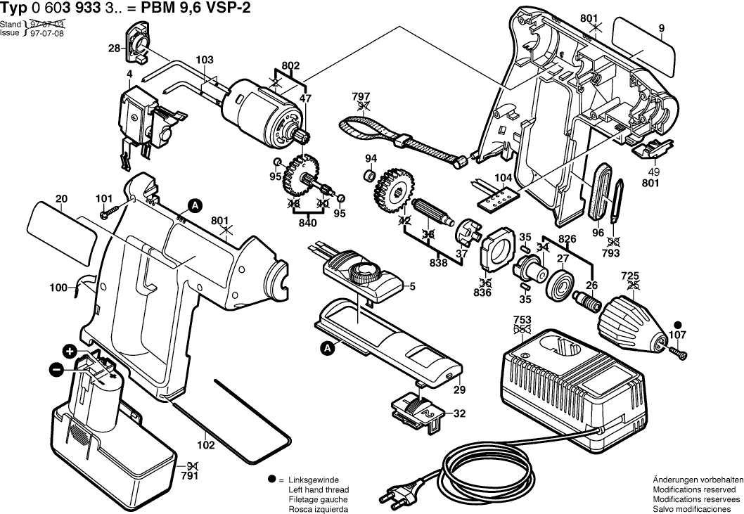Vous trouverez ici toutes les pièces et dessins disponibles du 'Bosch 0603933303 ( PBM9,6VSP-2 )'. De là, vous pouvez commander directement toutes les pièces souhaitées. De nombreuses pièces doivent être commandées auprès du fabricant, selon la marque, cela prend une à quatre semaines. Toutes les informations dont nous disposons se trouvent sur notre site Web, nous ne pouvons pas vous conseiller sur ce dont vous avez besoin, pour cela vous devrez retourner la machine pour réparation. Veuillez noter ce qui suit lors de la commande: