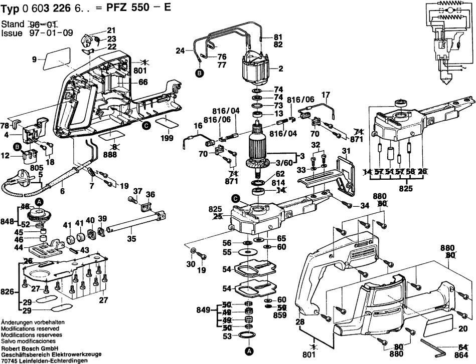 Vous trouverez ici toutes les pièces et dessins disponibles du 'Bosch 0603226603 ( PFZ550E )'. De là, vous pouvez commander directement toutes les pièces souhaitées. De nombreuses pièces doivent être commandées auprès du fabricant, selon la marque, cela prend une à quatre semaines. Toutes les informations dont nous disposons se trouvent sur notre site Web, nous ne pouvons pas vous conseiller sur ce dont vous avez besoin, pour cela vous devrez retourner la machine pour réparation. Veuillez noter ce qui suit lors de la commande: