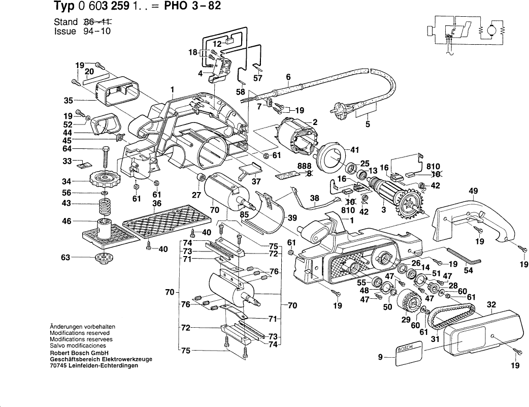 Liste de pièces de rechange des Bosch 0603259103 ( PHO3-82 )