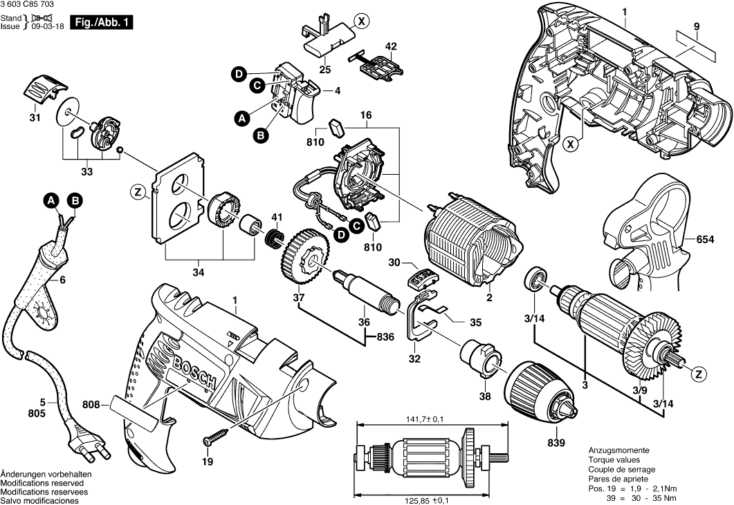Liste de pièces de rechange des Bosch 3603C85703 ( PSB650RA )