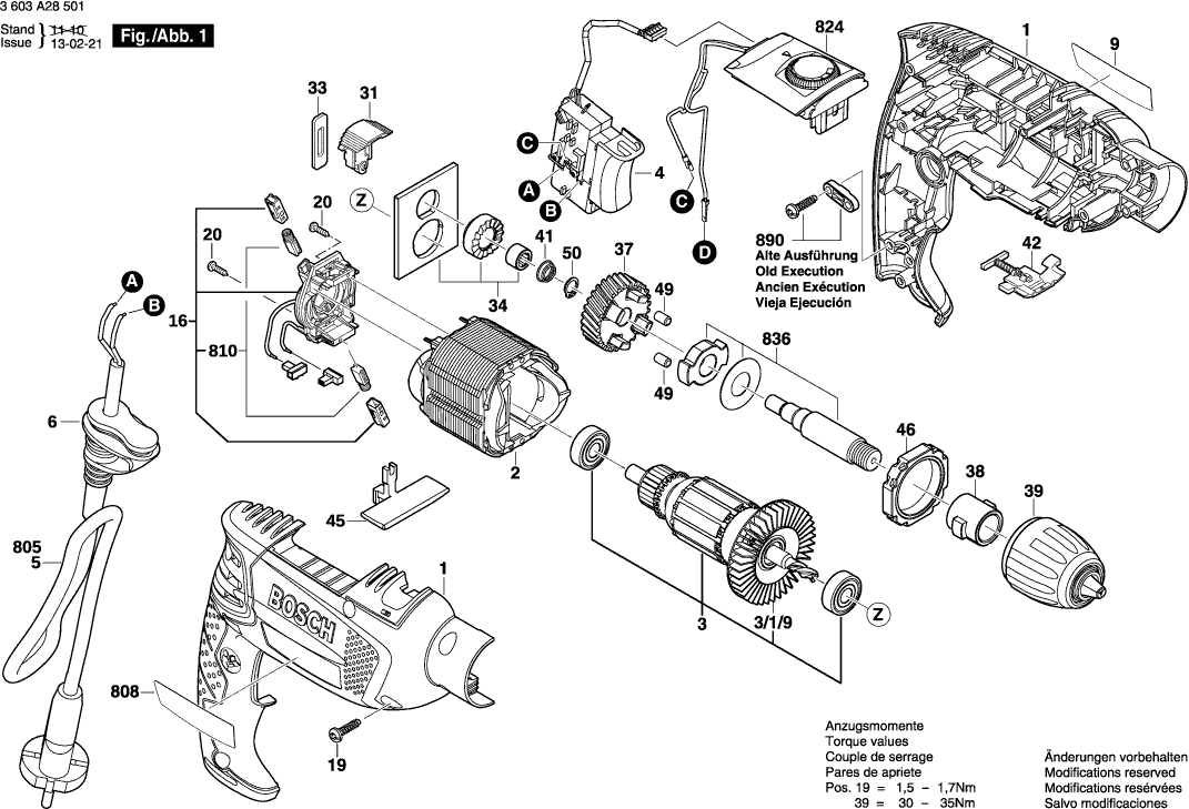 Vous trouverez ici toutes les pièces et dessins disponibles du 'Bosch 3603A28501 ( PSB750RCA )'. De là, vous pouvez commander directement toutes les pièces souhaitées. De nombreuses pièces doivent être commandées auprès du fabricant, selon la marque, cela prend une à quatre semaines. Toutes les informations dont nous disposons se trouvent sur notre site Web, nous ne pouvons pas vous conseiller sur ce dont vous avez besoin, pour cela vous devrez retourner la machine pour réparation. Veuillez noter ce qui suit lors de la commande:
