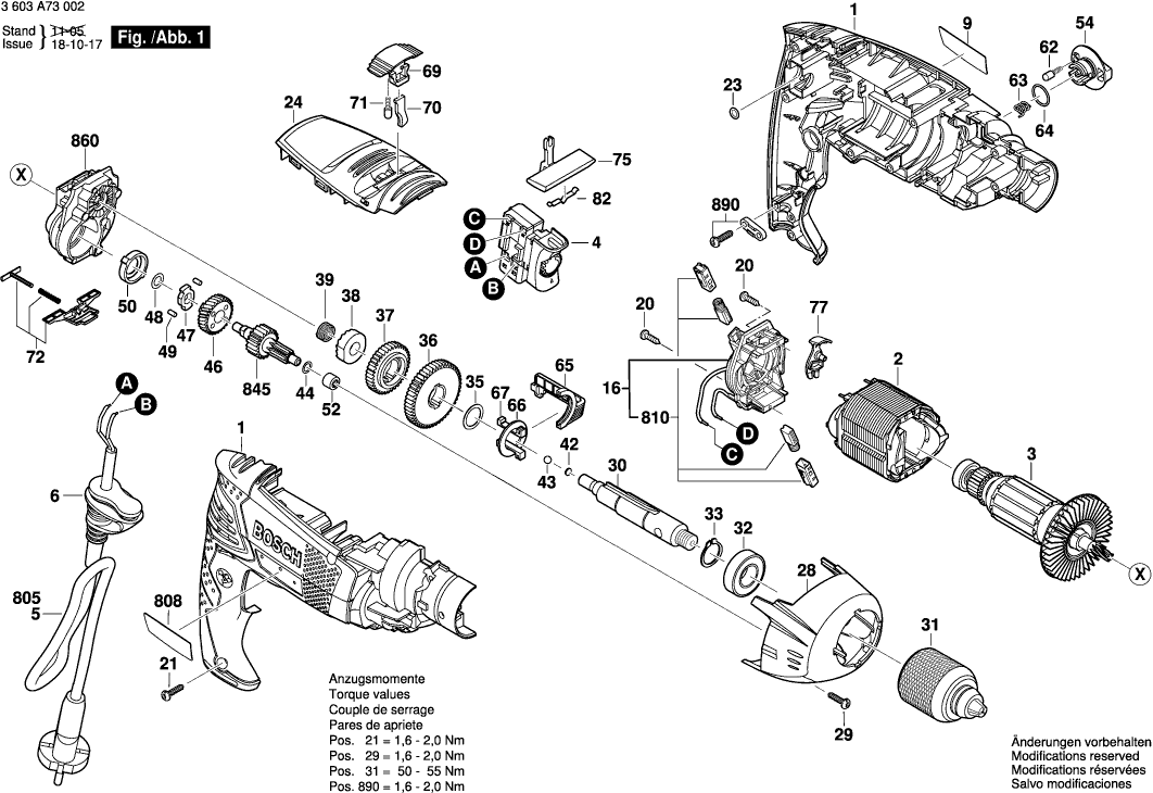 Liste de pièces de rechange des Bosch 3603A73002 ( PSB850-2RE )