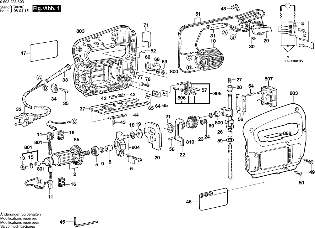 Vous trouverez ici toutes les pièces et dessins disponibles du 'Bosch 0603238603 ( PST50PE )'. De là, vous pouvez commander directement toutes les pièces souhaitées. De nombreuses pièces doivent être commandées auprès du fabricant, selon la marque, cela prend une à quatre semaines. Toutes les informations dont nous disposons se trouvent sur notre site Web, nous ne pouvons pas vous conseiller sur ce dont vous avez besoin, pour cela vous devrez retourner la machine pour réparation. Veuillez noter ce qui suit lors de la commande: