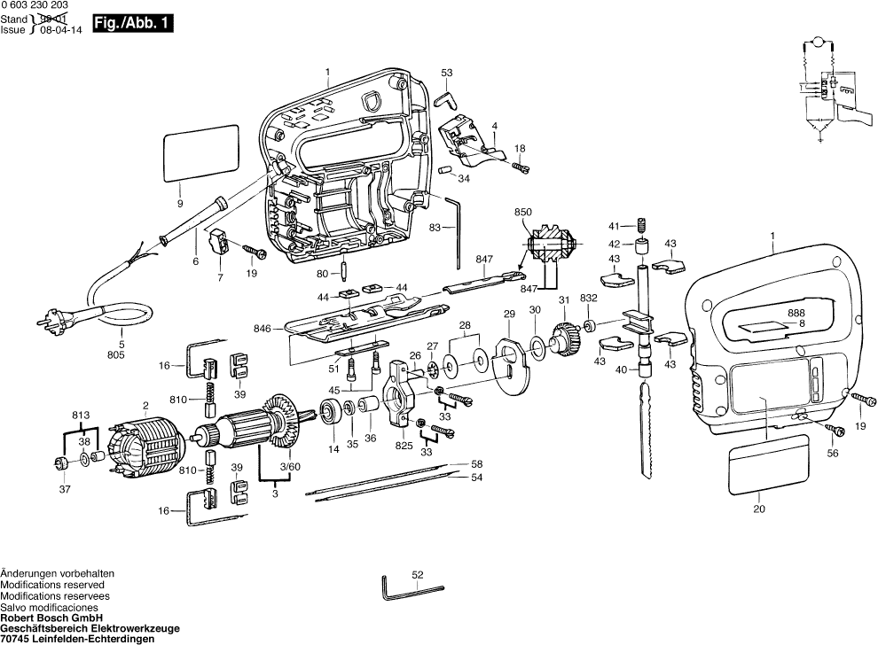 Vous trouverez ici toutes les pièces et dessins disponibles du 'Bosch 0603230203 ( PST54 )'. De là, vous pouvez commander directement toutes les pièces souhaitées. De nombreuses pièces doivent être commandées auprès du fabricant, selon la marque, cela prend une à quatre semaines. Toutes les informations dont nous disposons se trouvent sur notre site Web, nous ne pouvons pas vous conseiller sur ce dont vous avez besoin, pour cela vous devrez retourner la machine pour réparation. Veuillez noter ce qui suit lors de la commande: