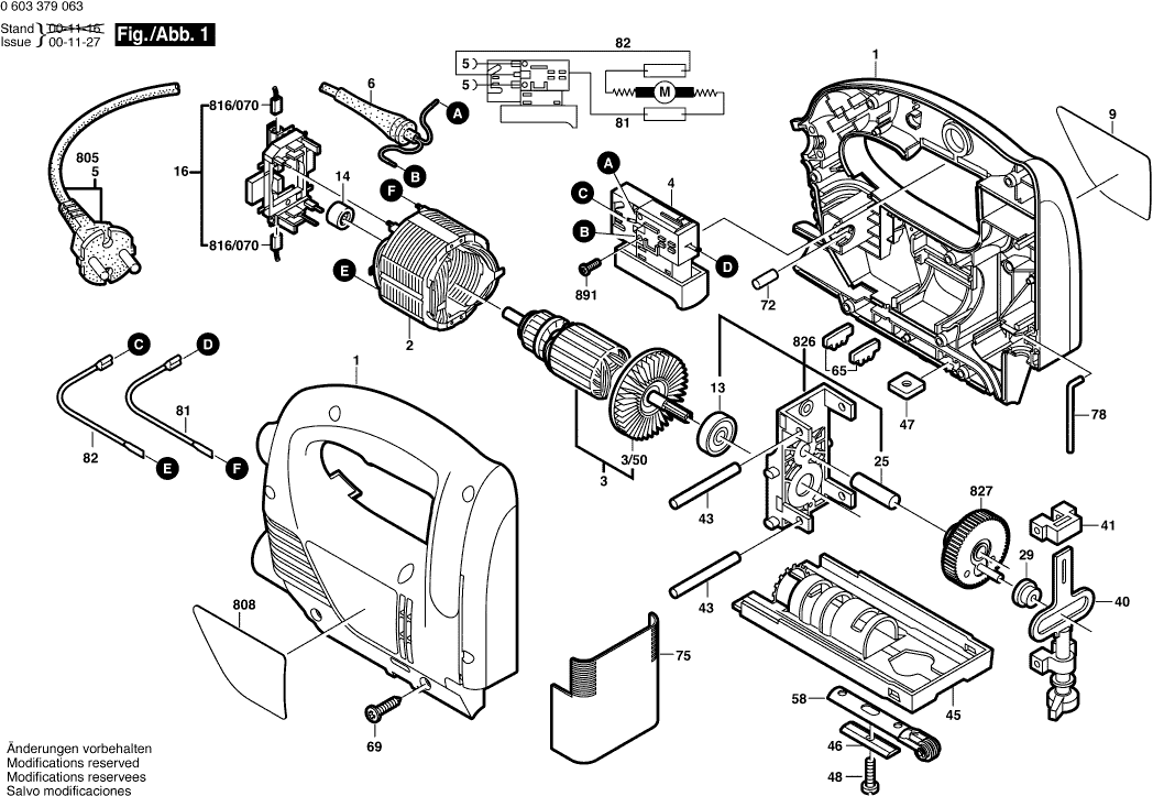 Vous trouverez ici toutes les pièces et dessins disponibles du 'Bosch 0603379003 ( PST550 )'. De là, vous pouvez commander directement toutes les pièces souhaitées. De nombreuses pièces doivent être commandées auprès du fabricant, selon la marque, cela prend une à quatre semaines. Toutes les informations dont nous disposons se trouvent sur notre site Web, nous ne pouvons pas vous conseiller sur ce dont vous avez besoin, pour cela vous devrez retourner la machine pour réparation. Veuillez noter ce qui suit lors de la commande: