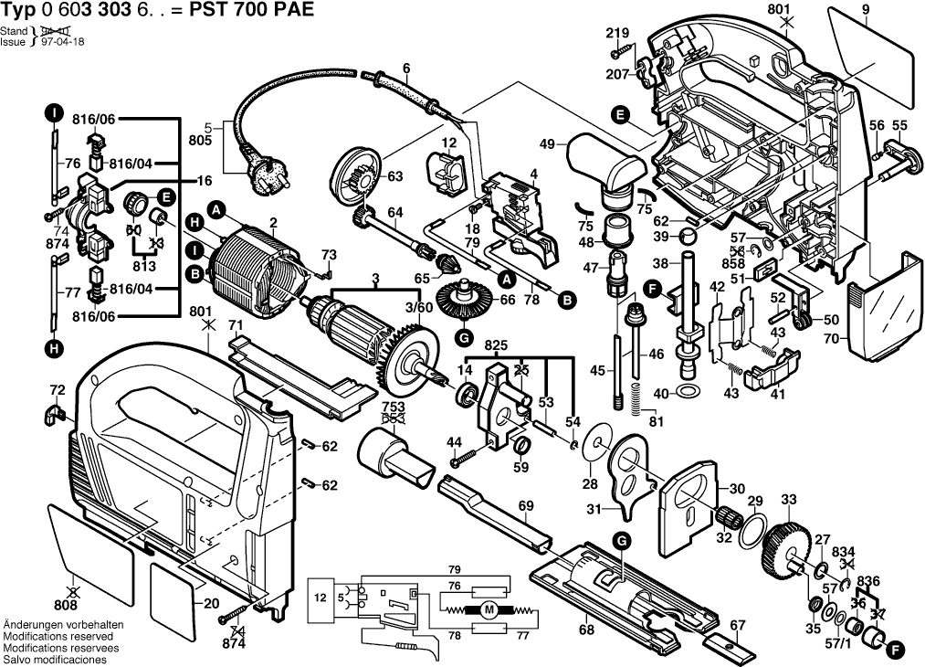 Vous trouverez ici toutes les pièces et dessins disponibles du 'Bosch 0603303603 ( PST700PAE )'. De là, vous pouvez commander directement toutes les pièces souhaitées. De nombreuses pièces doivent être commandées auprès du fabricant, selon la marque, cela prend une à quatre semaines. Toutes les informations dont nous disposons se trouvent sur notre site Web, nous ne pouvons pas vous conseiller sur ce dont vous avez besoin, pour cela vous devrez retourner la machine pour réparation. Veuillez noter ce qui suit lors de la commande: