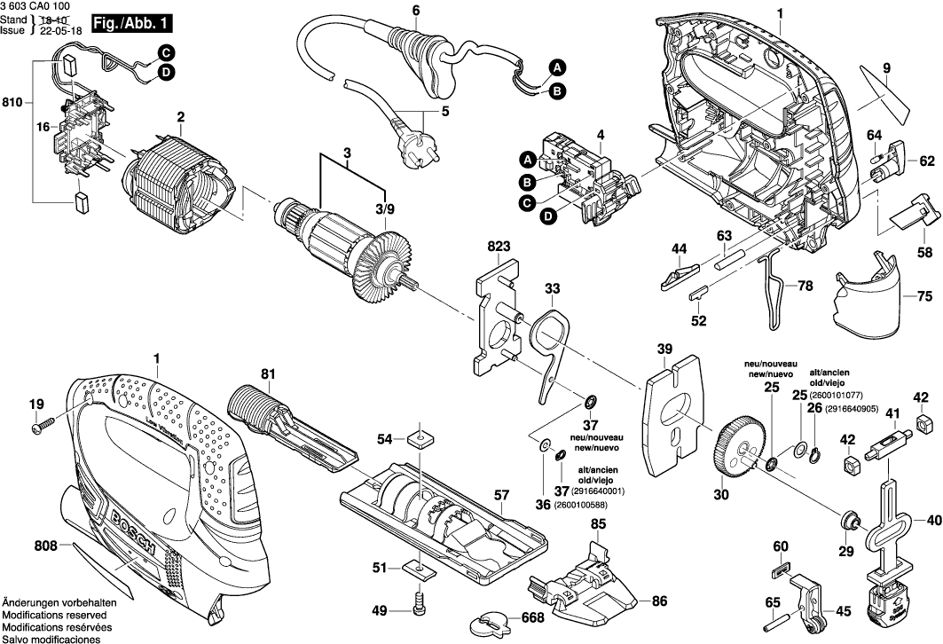 Vous trouverez ici toutes les pièces et dessins disponibles du 'Bosch 3603CA0600 ( PST750PEL )'. De là, vous pouvez commander directement toutes les pièces souhaitées. De nombreuses pièces doivent être commandées auprès du fabricant, selon la marque, cela prend une à quatre semaines. Toutes les informations dont nous disposons se trouvent sur notre site Web, nous ne pouvons pas vous conseiller sur ce dont vous avez besoin, pour cela vous devrez retourner la machine pour réparation. Veuillez noter ce qui suit lors de la commande: