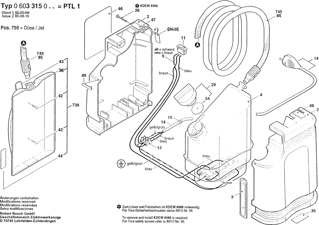Vous trouverez ici toutes les pièces et dessins disponibles du 'Bosch 0603315003 ( PTL1 )'. De là, vous pouvez commander directement toutes les pièces souhaitées. De nombreuses pièces doivent être commandées auprès du fabricant, selon la marque, cela prend une à quatre semaines. Toutes les informations dont nous disposons se trouvent sur notre site Web, nous ne pouvons pas vous conseiller sur ce dont vous avez besoin, pour cela vous devrez retourner la machine pour réparation. Veuillez noter ce qui suit lors de la commande: