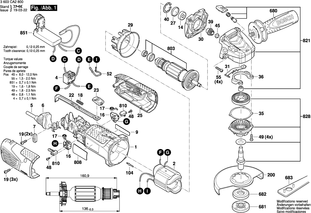 Liste de pièces de rechange des Bosch 3603CA2800 ( PWS1000-125CE )