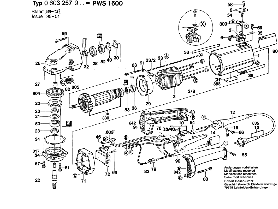 Vous trouverez ici toutes les pièces et dessins disponibles du 'Bosch 0603257903 ( PWS1600 )'. De là, vous pouvez commander directement toutes les pièces souhaitées. De nombreuses pièces doivent être commandées auprès du fabricant, selon la marque, cela prend une à quatre semaines. Toutes les informations dont nous disposons se trouvent sur notre site Web, nous ne pouvons pas vous conseiller sur ce dont vous avez besoin, pour cela vous devrez retourner la machine pour réparation. Veuillez noter ce qui suit lors de la commande: