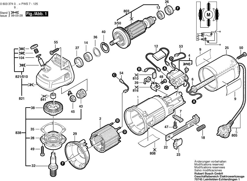 Vous trouverez ici toutes les pièces et dessins disponibles du 'Bosch 0603374003 ( PWS7-125 )'. De là, vous pouvez commander directement toutes les pièces souhaitées. De nombreuses pièces doivent être commandées auprès du fabricant, selon la marque, cela prend une à quatre semaines. Toutes les informations dont nous disposons se trouvent sur notre site Web, nous ne pouvons pas vous conseiller sur ce dont vous avez besoin, pour cela vous devrez retourner la machine pour réparation. Veuillez noter ce qui suit lors de la commande:
