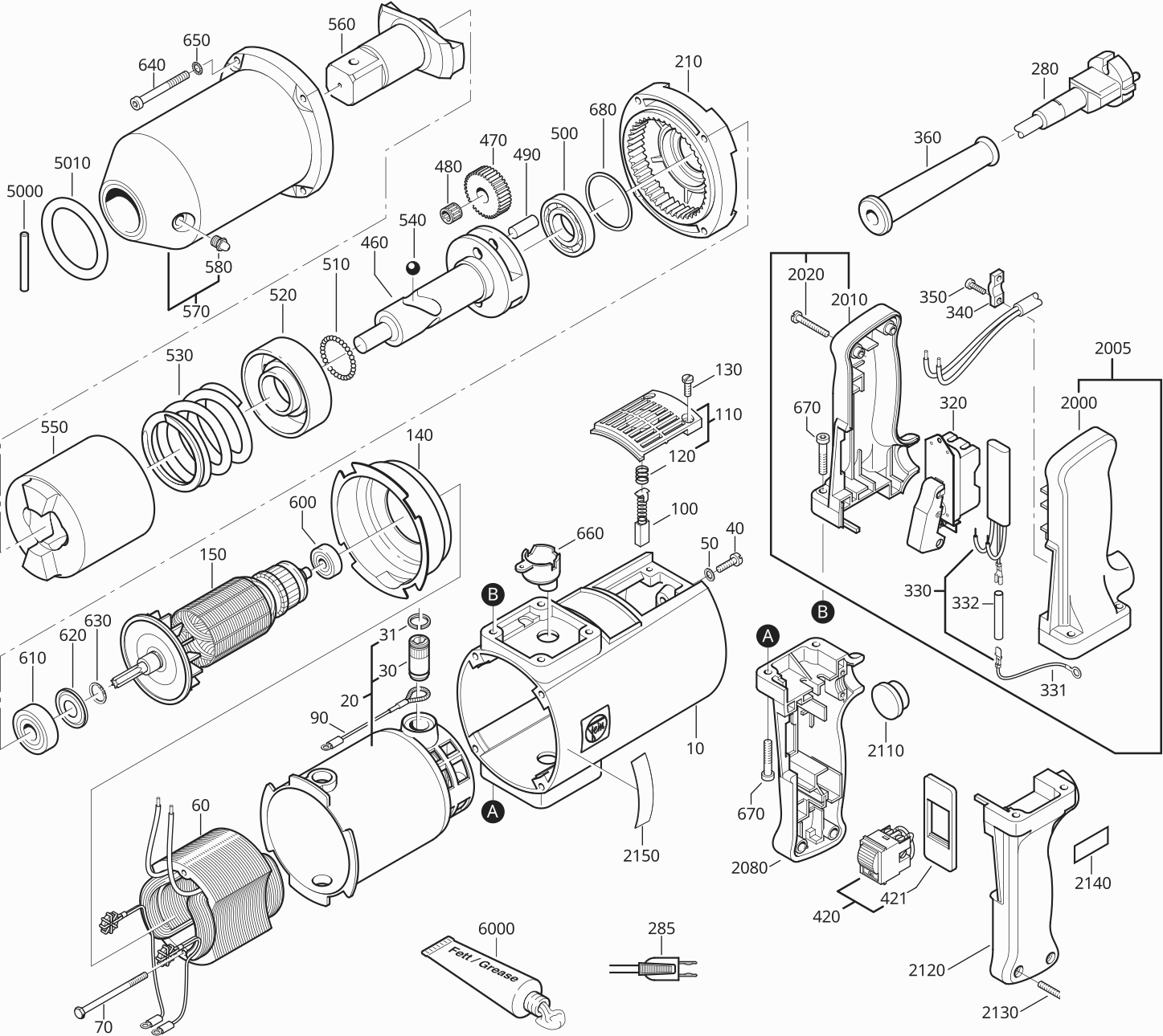Vous trouverez ici toutes les pièces et dessins disponibles du 'Fein 72152500114 ( ASB658-1 )'. De là, vous pouvez commander directement toutes les pièces souhaitées. De nombreuses pièces doivent être commandées auprès du fabricant, selon la marque, cela prend une à quatre semaines. Toutes les informations dont nous disposons se trouvent sur notre site Web, nous ne pouvons pas vous conseiller sur ce dont vous avez besoin, pour cela vous devrez retourner la machine pour réparation. Veuillez noter ce qui suit lors de la commande: