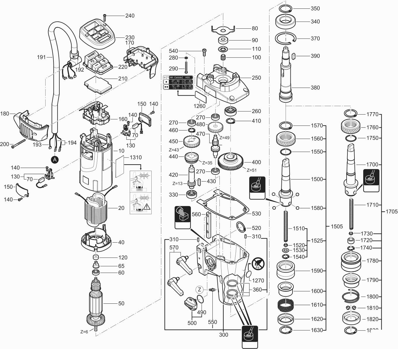 Vous trouverez ici toutes les pièces et dessins disponibles du 'Fein 72732500230 ( KBM50UQW )'. De là, vous pouvez commander directement toutes les pièces souhaitées. De nombreuses pièces doivent être commandées auprès du fabricant, selon la marque, cela prend une à quatre semaines. Toutes les informations dont nous disposons se trouvent sur notre site Web, nous ne pouvons pas vous conseiller sur ce dont vous avez besoin, pour cela vous devrez retourner la machine pour réparation. Veuillez noter ce qui suit lors de la commande: