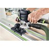 Met de bovenfrees OF 1010 R kun je maximaal precies werken. Kolomklemming aan beide zijden maakt de frees extreem torsiestijf en de zijaanslag kan nauwkeurig en zonder gereedschap worden afgesteld. Het goed toegankelijke werkgebied met LED-lichtring biedt optimaal zicht op het werkstuk. Deze bevindt zich direct op het werkstuk en biedt een schaduwvrije verlichting. Alles voor zeer nauwkeurige freesresultaten. En dankzij de omvangrijke accessoires zijn de toepassingen van de OF 1010 R bijna onbeperkt. Zeer complete set met accessoires, geleiderail FS800/2 en freesbox.