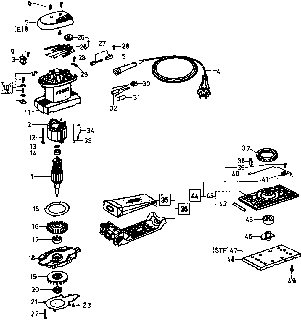 Vous trouverez ici toutes les pièces et dessins disponibles du 'Festool 486864 ( RS4E )'. De là, vous pouvez commander directement toutes les pièces souhaitées. De nombreuses pièces doivent être commandées auprès du fabricant, selon la marque, cela prend une à quatre semaines. Toutes les informations dont nous disposons se trouvent sur notre site Web, nous ne pouvons pas vous conseiller sur ce dont vous avez besoin, pour cela vous devrez retourner la machine pour réparation. Veuillez noter ce qui suit lors de la commande: