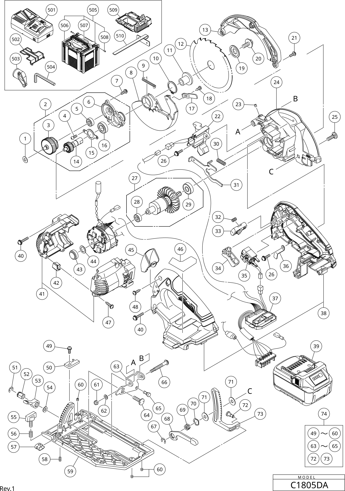 Vous trouverez ici toutes les pièces et dessins disponibles du 'Hikoki C1805DA'. De là, vous pouvez commander directement toutes les pièces souhaitées. De nombreuses pièces doivent être commandées auprès du fabricant, selon la marque, cela prend une à quatre semaines. Toutes les informations dont nous disposons se trouvent sur notre site Web, nous ne pouvons pas vous conseiller sur ce dont vous avez besoin, pour cela vous devrez retourner la machine pour réparation. Veuillez noter ce qui suit lors de la commande: