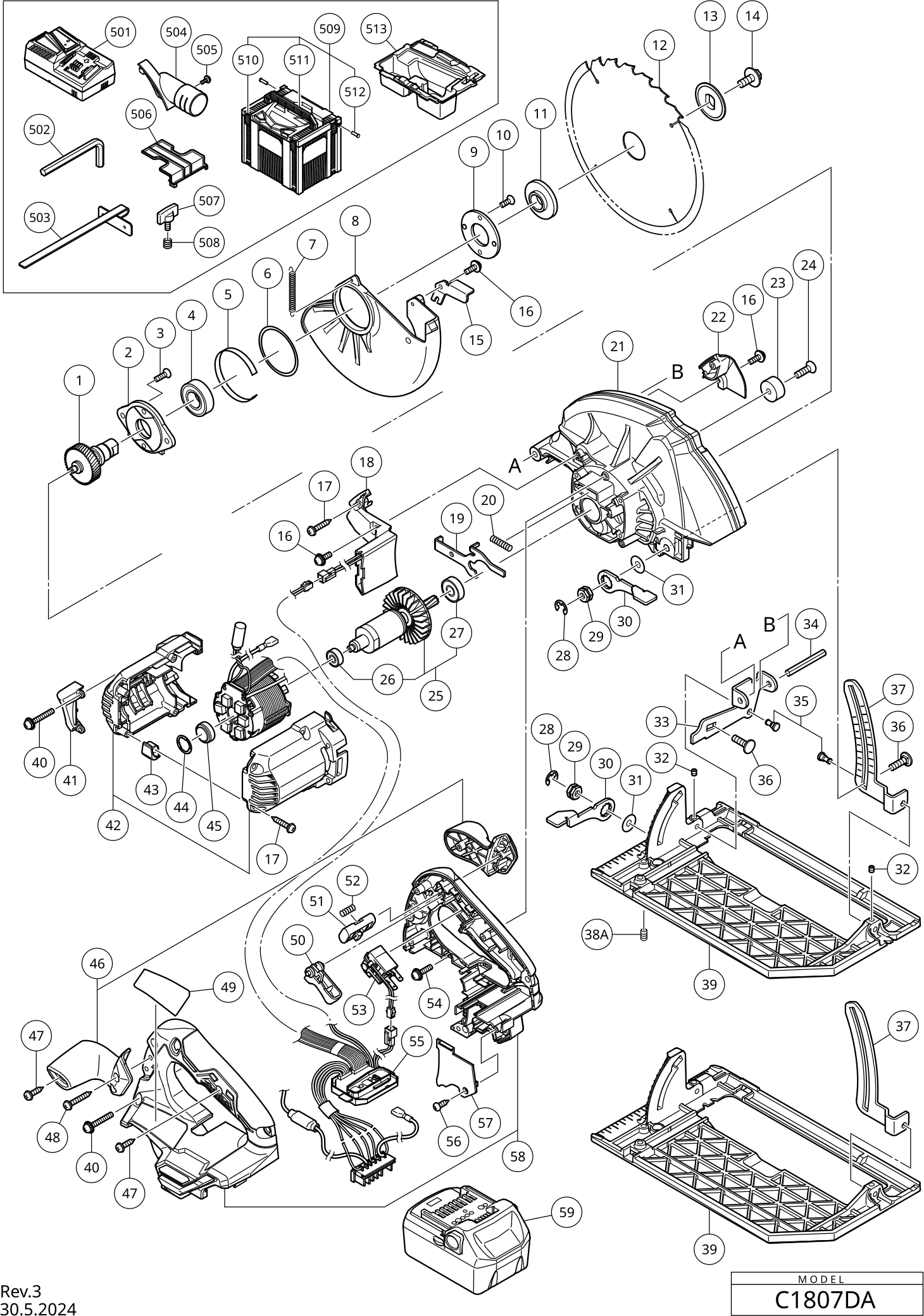 Vous trouverez ici toutes les pièces et dessins disponibles du 'Hikoki C1807DA'. De là, vous pouvez commander directement toutes les pièces souhaitées. De nombreuses pièces doivent être commandées auprès du fabricant, selon la marque, cela prend une à quatre semaines. Toutes les informations dont nous disposons se trouvent sur notre site Web, nous ne pouvons pas vous conseiller sur ce dont vous avez besoin, pour cela vous devrez retourner la machine pour réparation. Veuillez noter ce qui suit lors de la commande: