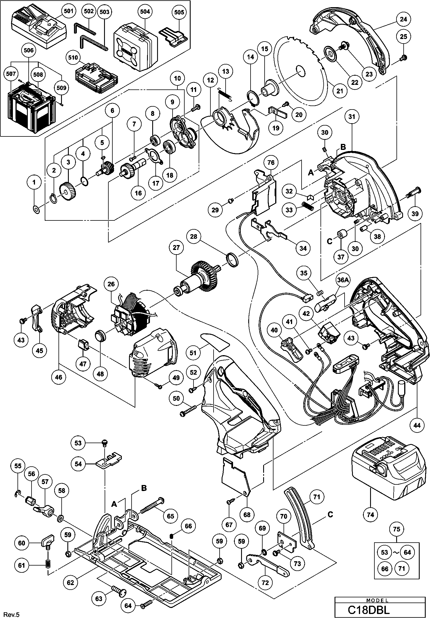 Liste de pièces de rechange des Hikoki C18DBL