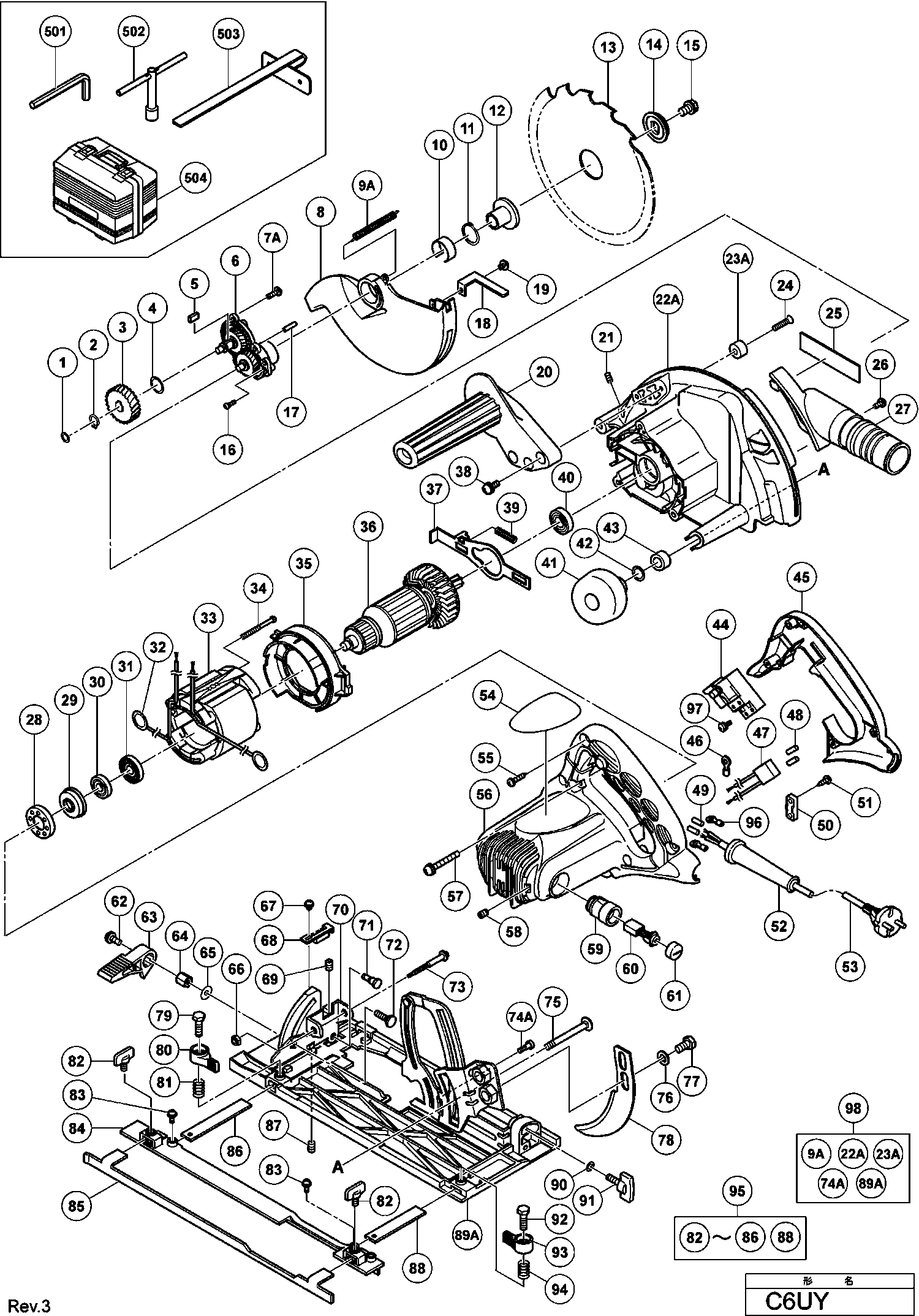Vous trouverez ici toutes les pièces et dessins disponibles du 'Hikoki C6UY'. De là, vous pouvez commander directement toutes les pièces souhaitées. De nombreuses pièces doivent être commandées auprès du fabricant, selon la marque, cela prend une à quatre semaines. Toutes les informations dont nous disposons se trouvent sur notre site Web, nous ne pouvons pas vous conseiller sur ce dont vous avez besoin, pour cela vous devrez retourner la machine pour réparation. Veuillez noter ce qui suit lors de la commande: