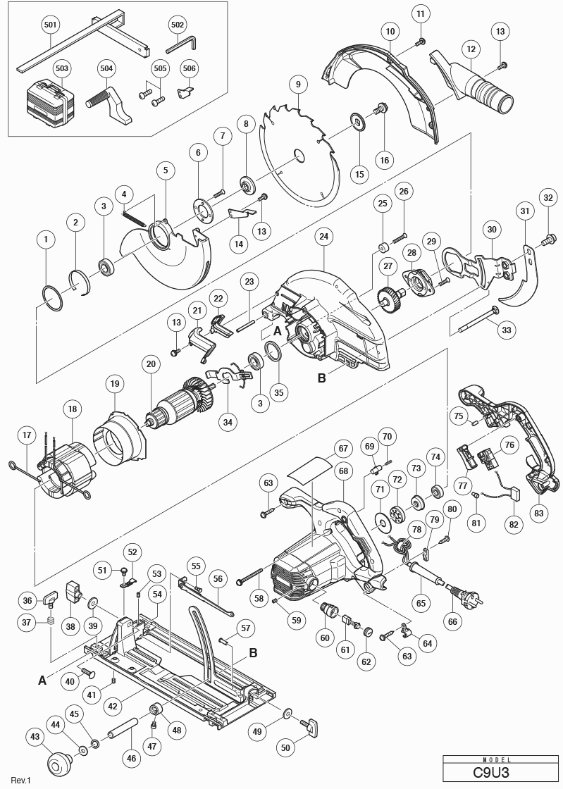 Vous trouverez ici toutes les pièces et dessins disponibles du 'Hikoki C9U3'. De là, vous pouvez commander directement toutes les pièces souhaitées. De nombreuses pièces doivent être commandées auprès du fabricant, selon la marque, cela prend une à quatre semaines. Toutes les informations dont nous disposons se trouvent sur notre site Web, nous ne pouvons pas vous conseiller sur ce dont vous avez besoin, pour cela vous devrez retourner la machine pour réparation. Veuillez noter ce qui suit lors de la commande: