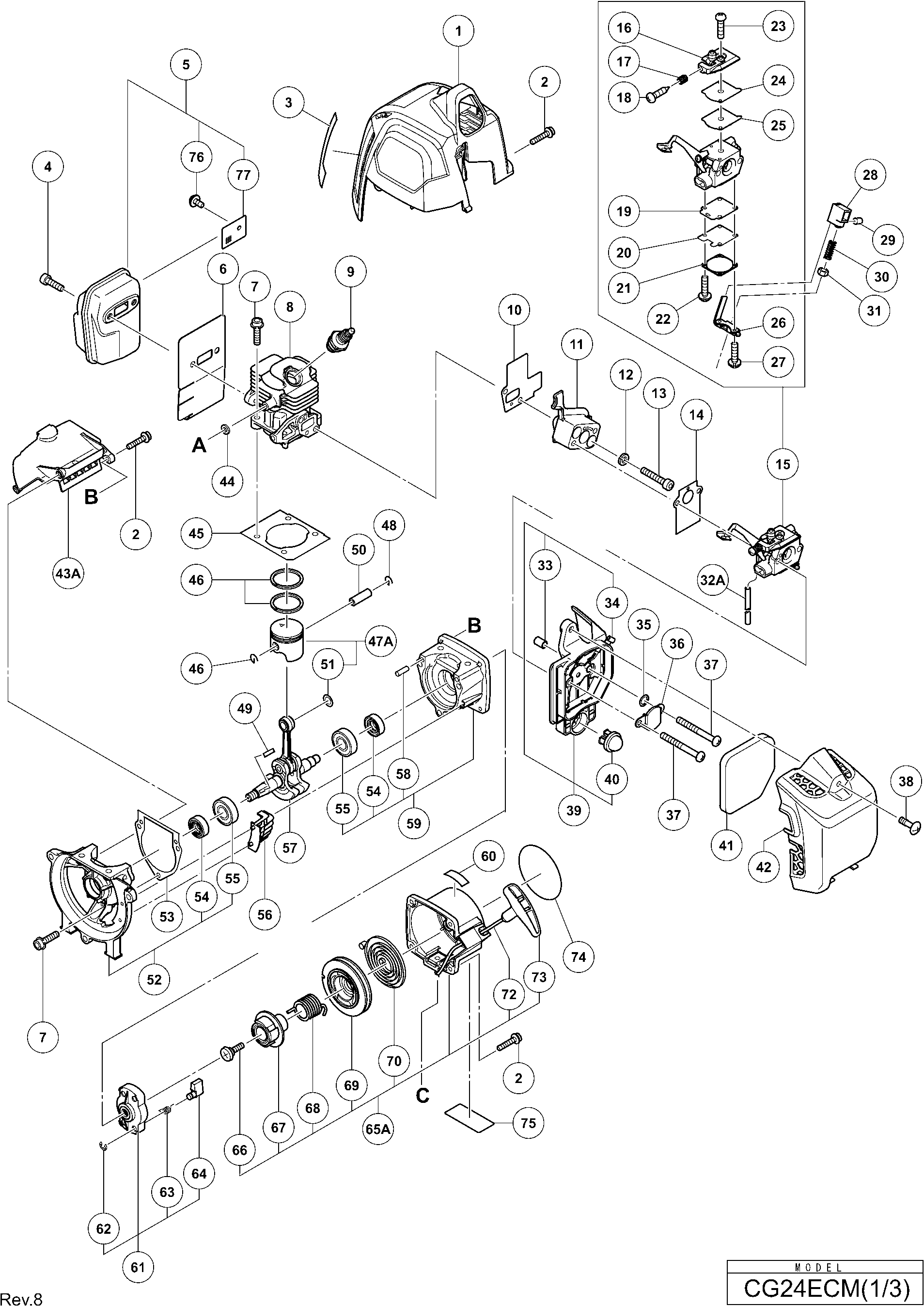 Liste de pièces de rechange des Hikoki CG24ECM