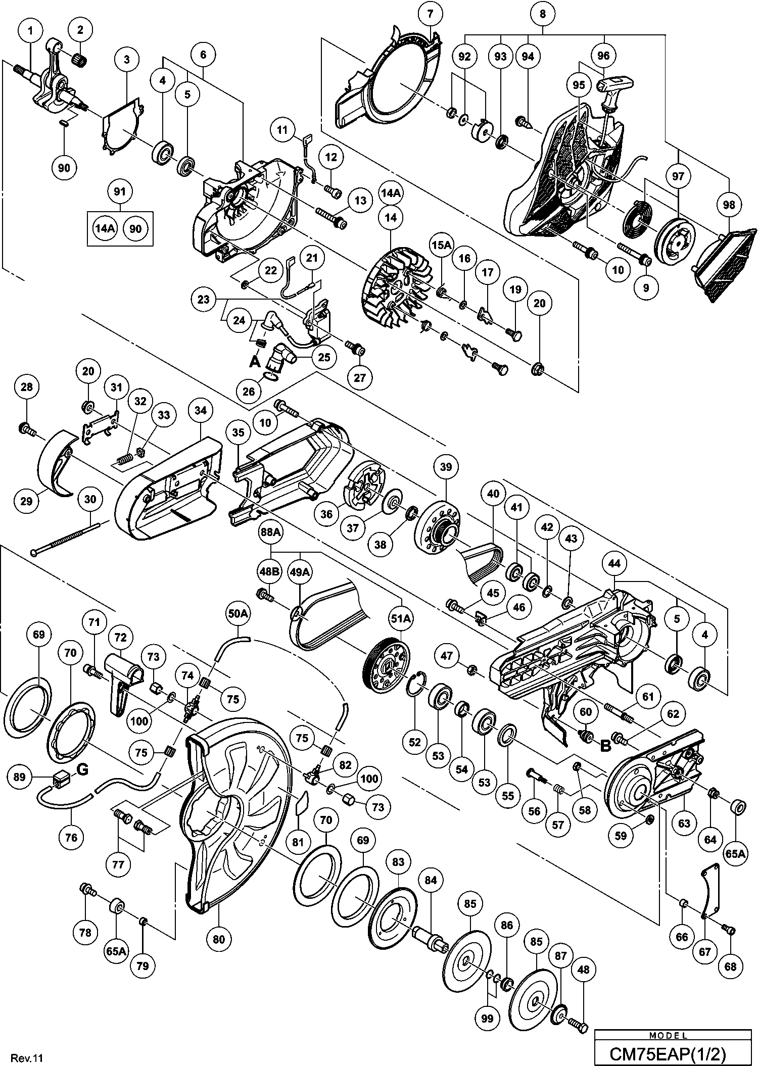 Liste de pièces de rechange des Hikoki CM75EAP