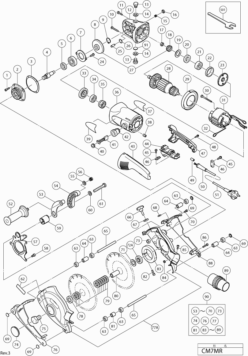 Vous trouverez ici toutes les pièces et dessins disponibles du 'Hikoki CM7SR'. De là, vous pouvez commander directement toutes les pièces souhaitées. De nombreuses pièces doivent être commandées auprès du fabricant, selon la marque, cela prend une à quatre semaines. Toutes les informations dont nous disposons se trouvent sur notre site Web, nous ne pouvons pas vous conseiller sur ce dont vous avez besoin, pour cela vous devrez retourner la machine pour réparation. Veuillez noter ce qui suit lors de la commande: