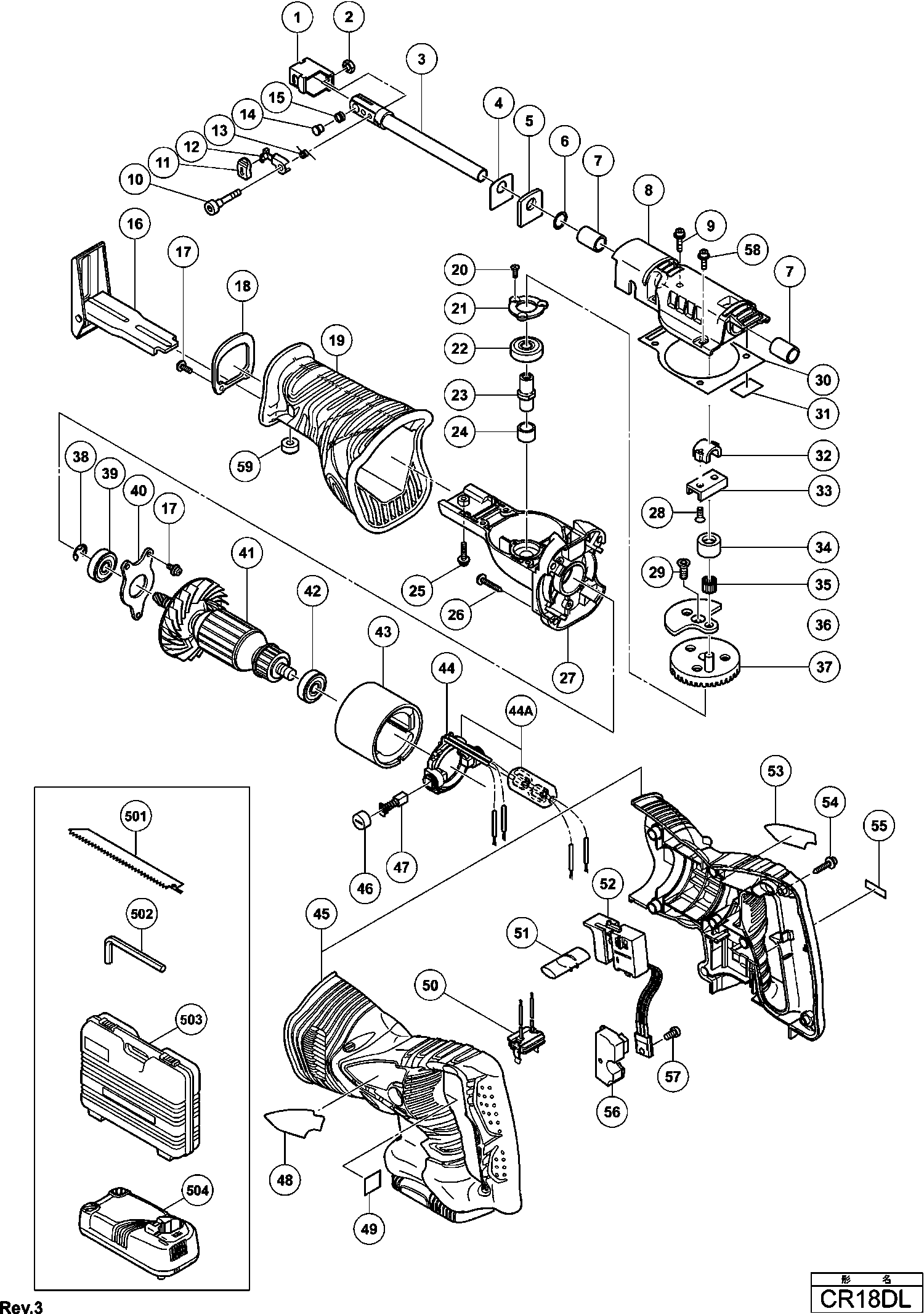 Vous trouverez ici toutes les pièces et dessins disponibles du 'Hikoki CR18DL'. De là, vous pouvez commander directement toutes les pièces souhaitées. De nombreuses pièces doivent être commandées auprès du fabricant, selon la marque, cela prend une à quatre semaines. Toutes les informations dont nous disposons se trouvent sur notre site Web, nous ne pouvons pas vous conseiller sur ce dont vous avez besoin, pour cela vous devrez retourner la machine pour réparation. Veuillez noter ce qui suit lors de la commande: