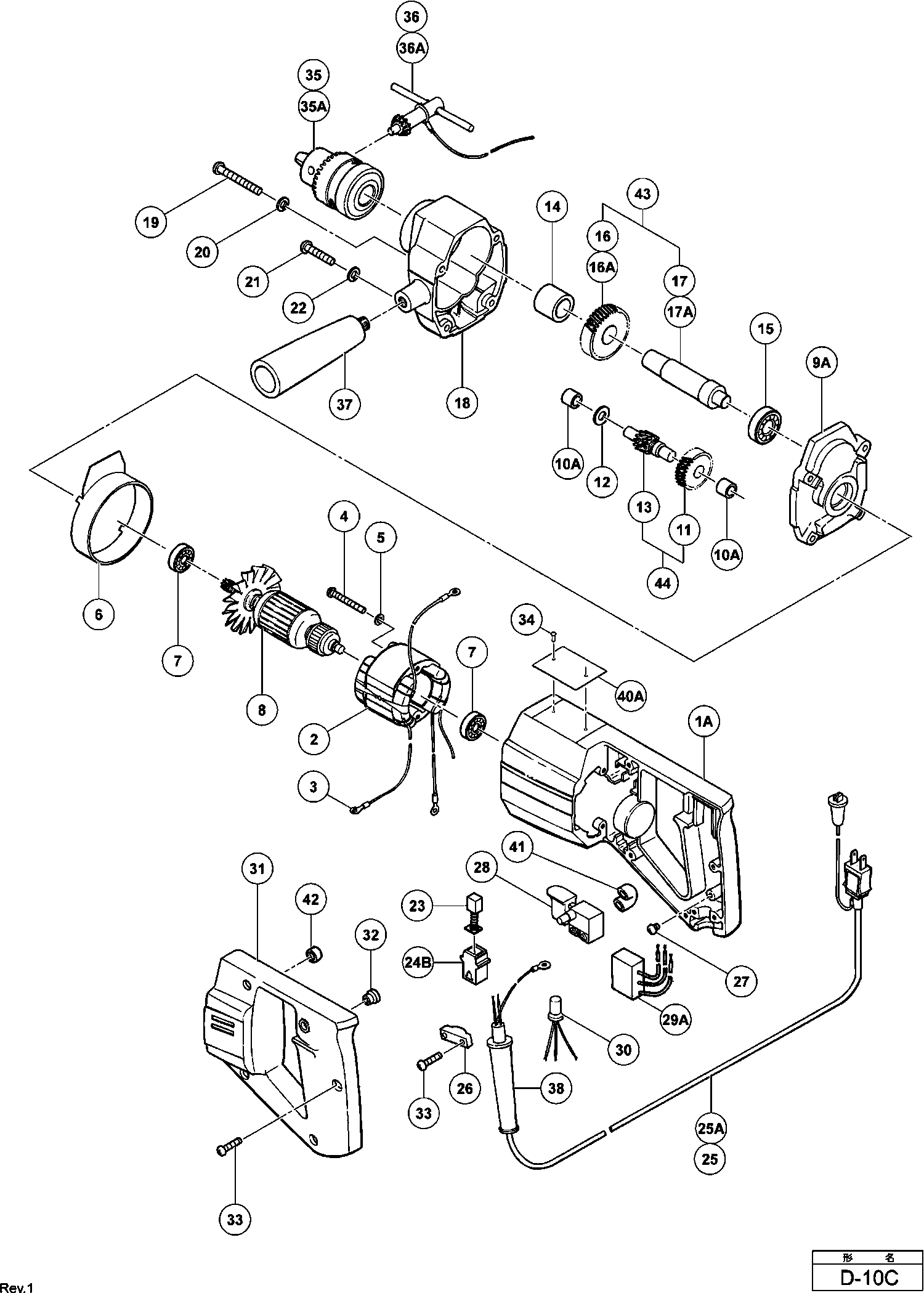 Liste de pièces de rechange des Hikoki D-10C