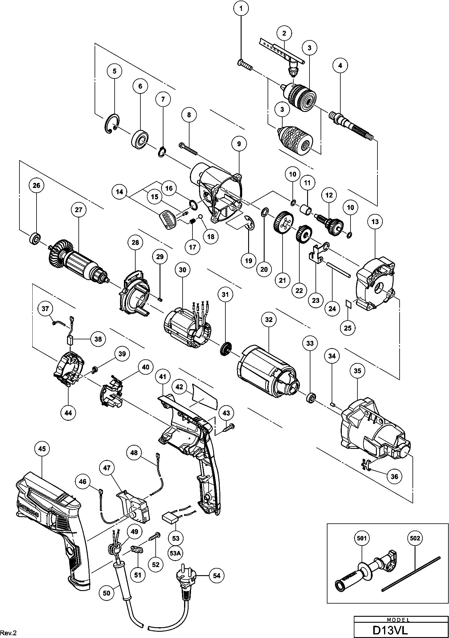 Vous trouverez ici toutes les pièces et dessins disponibles du 'Hikoki D13VL'. De là, vous pouvez commander directement toutes les pièces souhaitées. De nombreuses pièces doivent être commandées auprès du fabricant, selon la marque, cela prend une à quatre semaines. Toutes les informations dont nous disposons se trouvent sur notre site Web, nous ne pouvons pas vous conseiller sur ce dont vous avez besoin, pour cela vous devrez retourner la machine pour réparation. Veuillez noter ce qui suit lors de la commande: