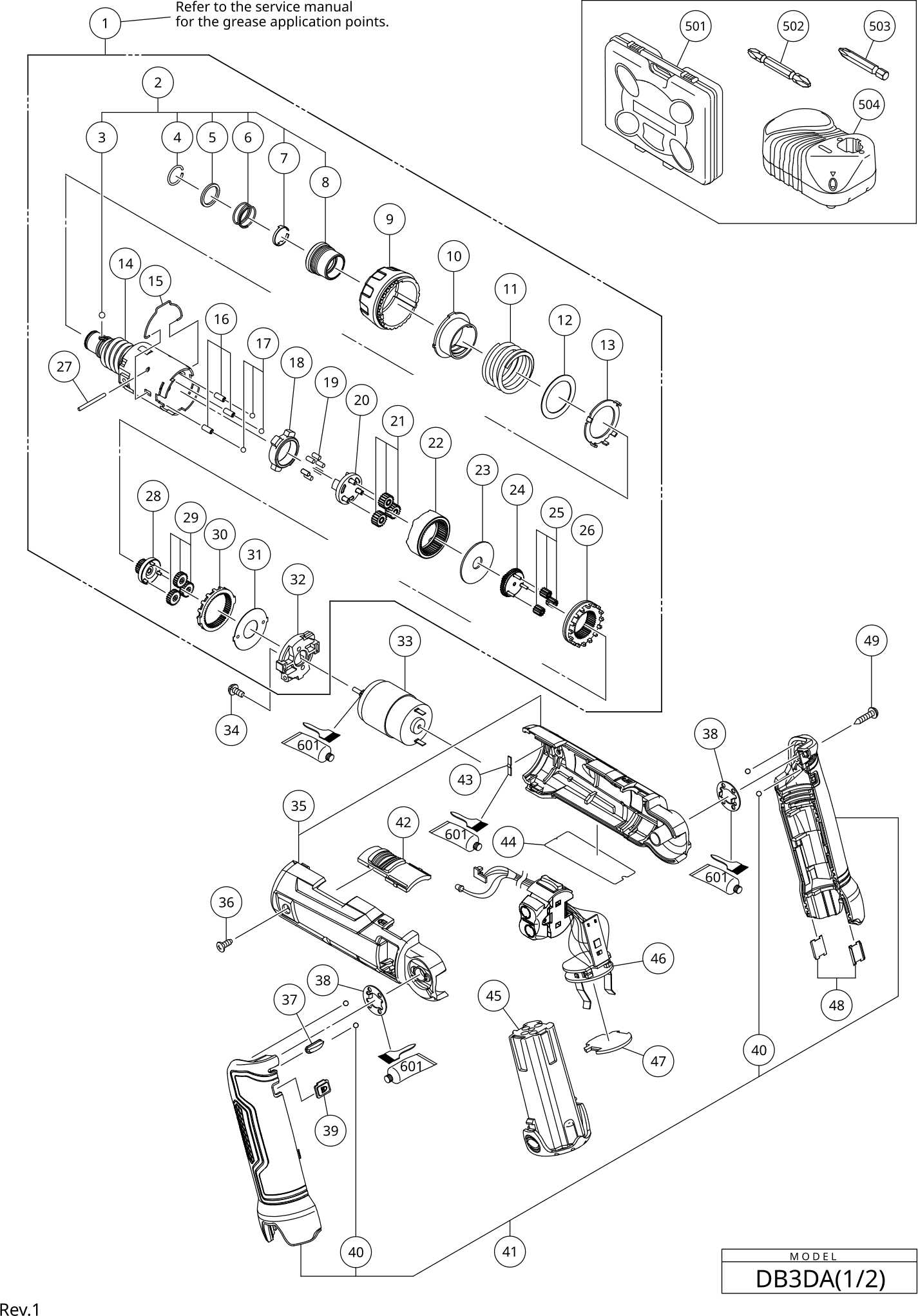 Vous trouverez ici toutes les pièces et dessins disponibles du 'Hikoki DB3DA'. De là, vous pouvez commander directement toutes les pièces souhaitées. De nombreuses pièces doivent être commandées auprès du fabricant, selon la marque, cela prend une à quatre semaines. Toutes les informations dont nous disposons se trouvent sur notre site Web, nous ne pouvons pas vous conseiller sur ce dont vous avez besoin, pour cela vous devrez retourner la machine pour réparation. Veuillez noter ce qui suit lors de la commande: