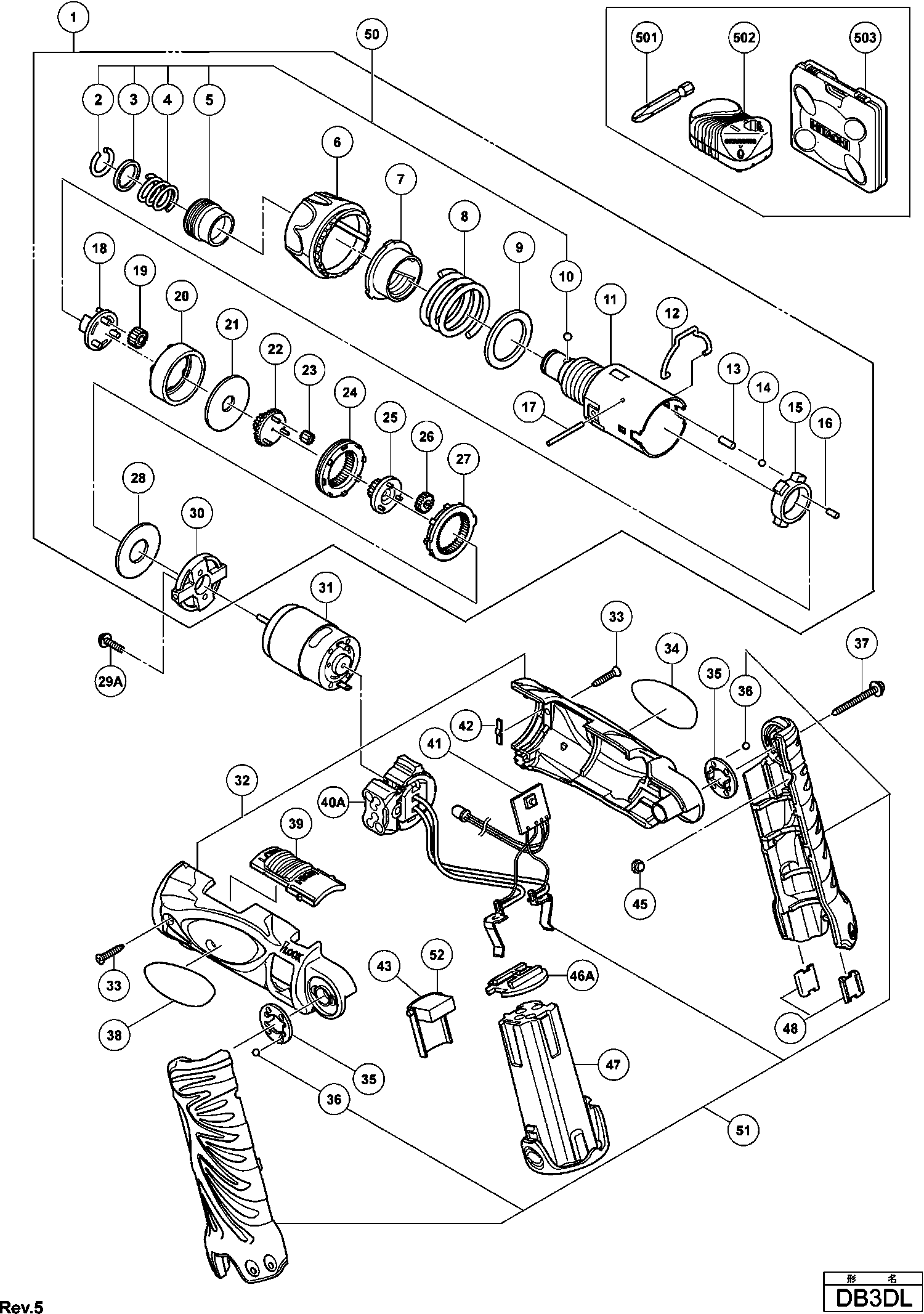 Liste de pièces de rechange des Hikoki DB3DL