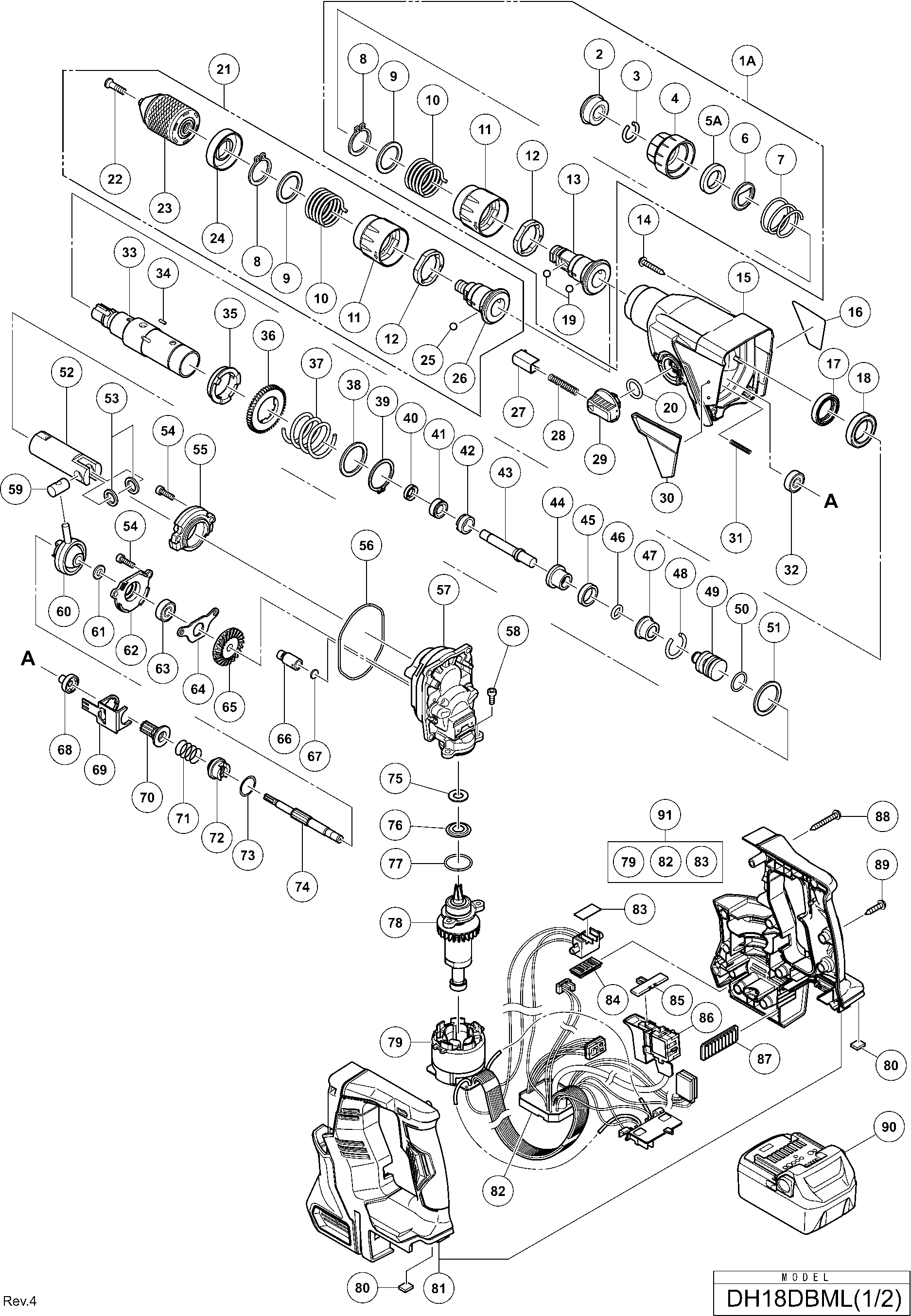 Liste de pièces de rechange des Hikoki DH18DBML