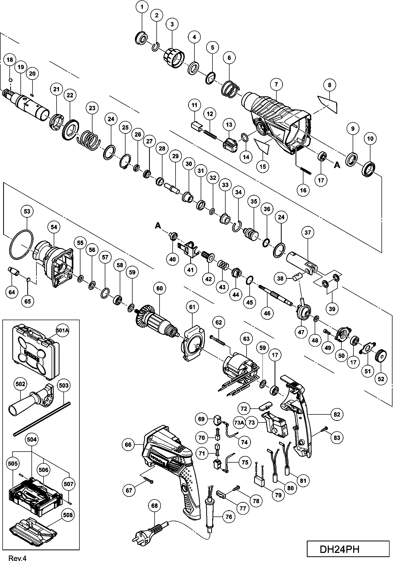 Liste de pièces de rechange des Hikoki DH24PH