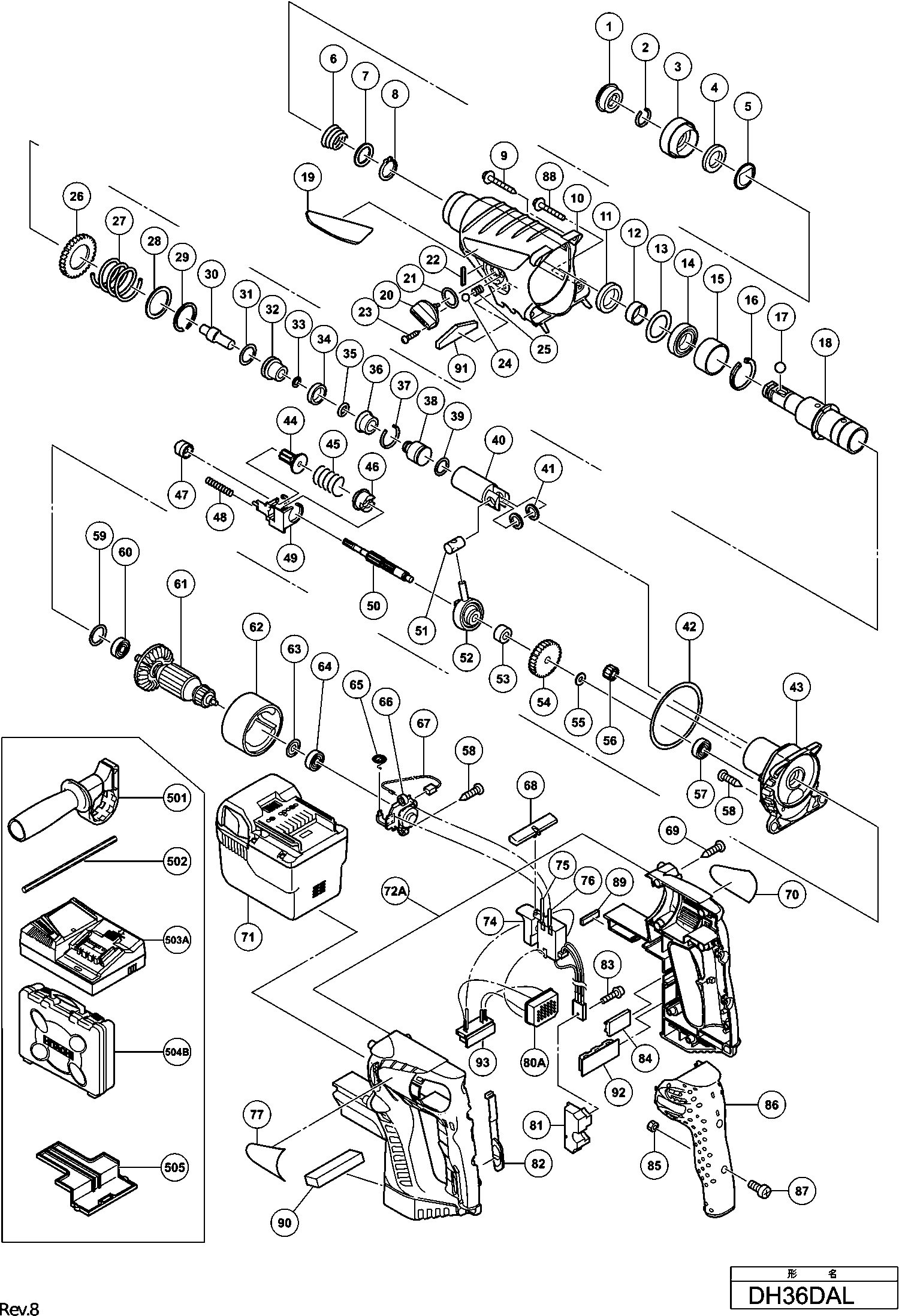 Liste de pièces de rechange des Hikoki DH36DAL
