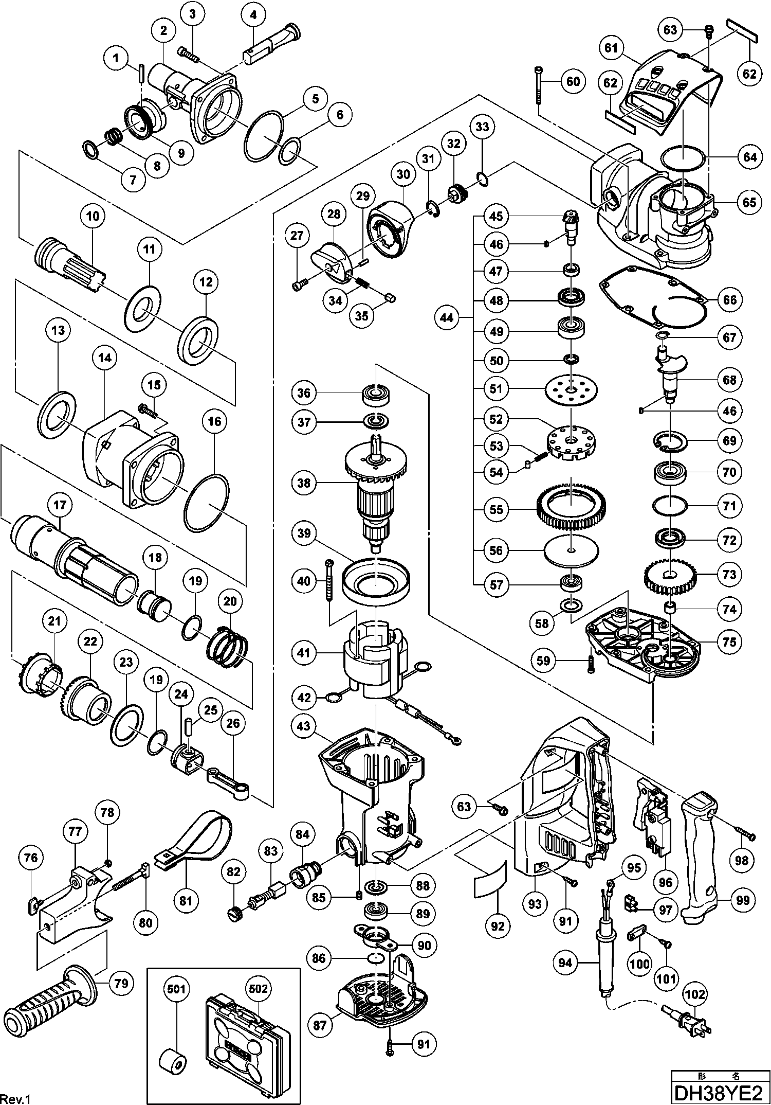 Vous trouverez ici toutes les pièces et dessins disponibles du 'Hikoki DH38YE2'. De là, vous pouvez commander directement toutes les pièces souhaitées. De nombreuses pièces doivent être commandées auprès du fabricant, selon la marque, cela prend une à quatre semaines. Toutes les informations dont nous disposons se trouvent sur notre site Web, nous ne pouvons pas vous conseiller sur ce dont vous avez besoin, pour cela vous devrez retourner la machine pour réparation. Veuillez noter ce qui suit lors de la commande: