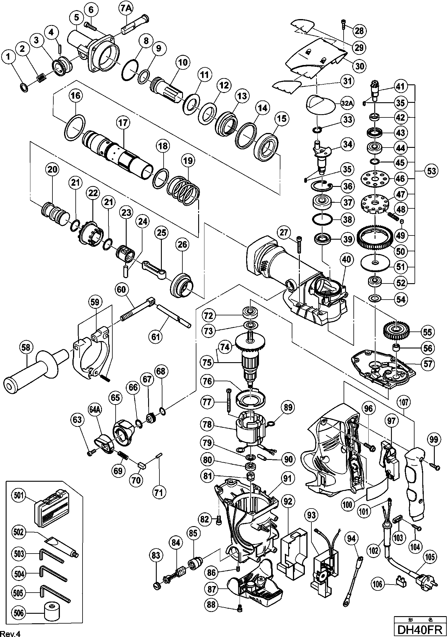 Vous trouverez ici toutes les pièces et dessins disponibles du 'Hikoki DH40FR'. De là, vous pouvez commander directement toutes les pièces souhaitées. De nombreuses pièces doivent être commandées auprès du fabricant, selon la marque, cela prend une à quatre semaines. Toutes les informations dont nous disposons se trouvent sur notre site Web, nous ne pouvons pas vous conseiller sur ce dont vous avez besoin, pour cela vous devrez retourner la machine pour réparation. Veuillez noter ce qui suit lors de la commande: