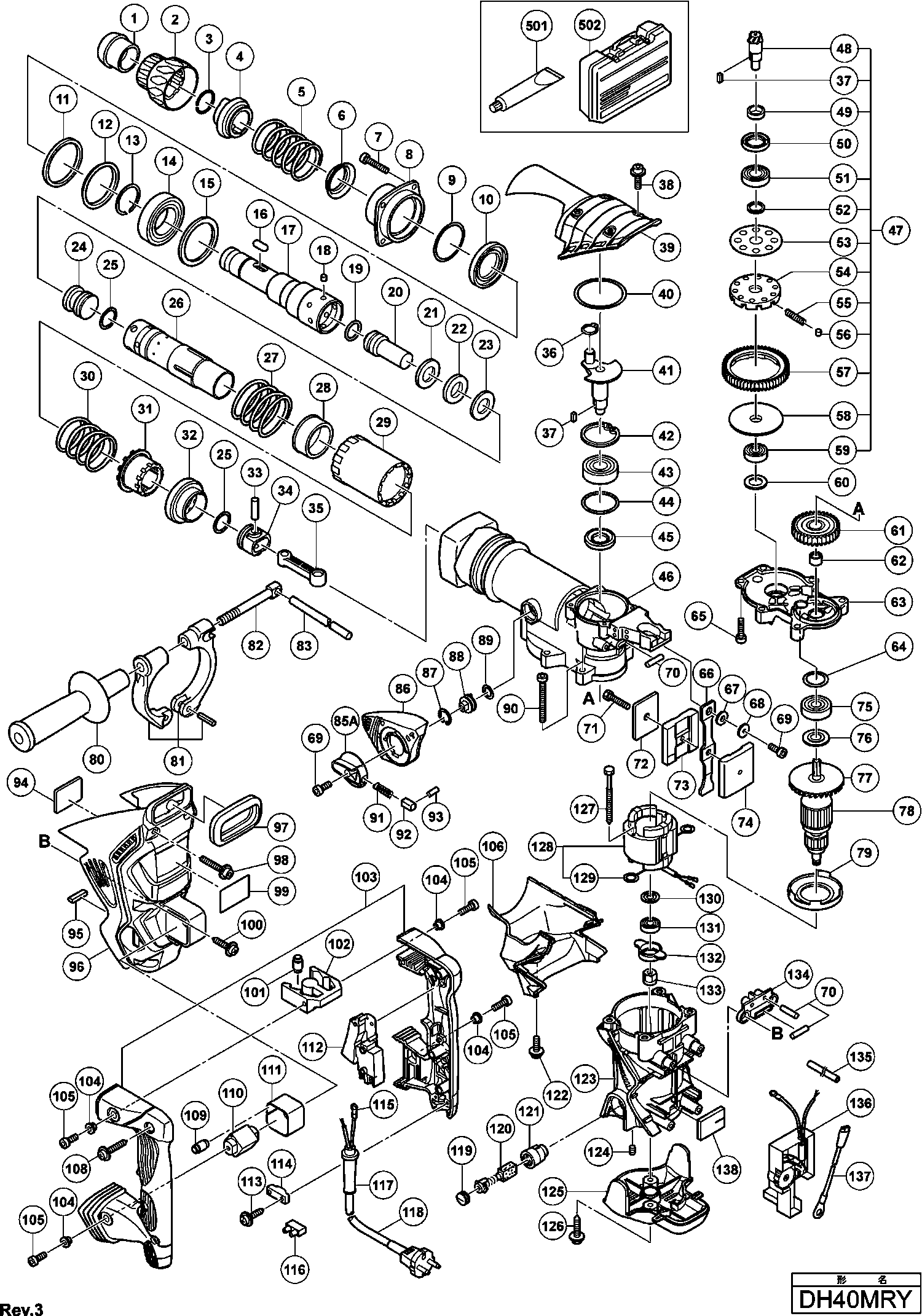 Vous trouverez ici toutes les pièces et dessins disponibles du 'Hikoki DH40MRY'. De là, vous pouvez commander directement toutes les pièces souhaitées. De nombreuses pièces doivent être commandées auprès du fabricant, selon la marque, cela prend une à quatre semaines. Toutes les informations dont nous disposons se trouvent sur notre site Web, nous ne pouvons pas vous conseiller sur ce dont vous avez besoin, pour cela vous devrez retourner la machine pour réparation. Veuillez noter ce qui suit lors de la commande: