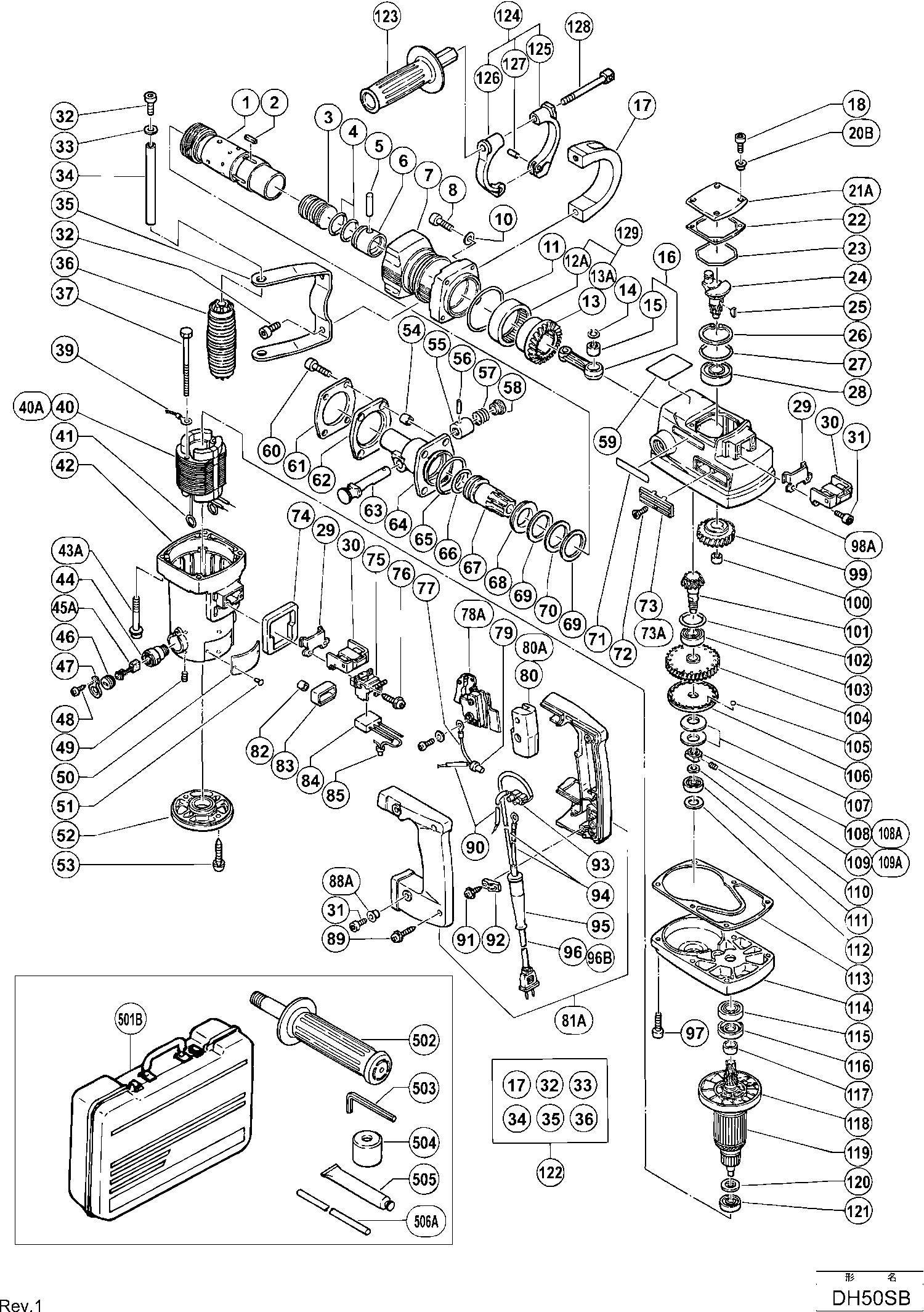 Vous trouverez ici toutes les pièces et dessins disponibles du 'Hikoki DH50SB'. De là, vous pouvez commander directement toutes les pièces souhaitées. De nombreuses pièces doivent être commandées auprès du fabricant, selon la marque, cela prend une à quatre semaines. Toutes les informations dont nous disposons se trouvent sur notre site Web, nous ne pouvons pas vous conseiller sur ce dont vous avez besoin, pour cela vous devrez retourner la machine pour réparation. Veuillez noter ce qui suit lors de la commande: