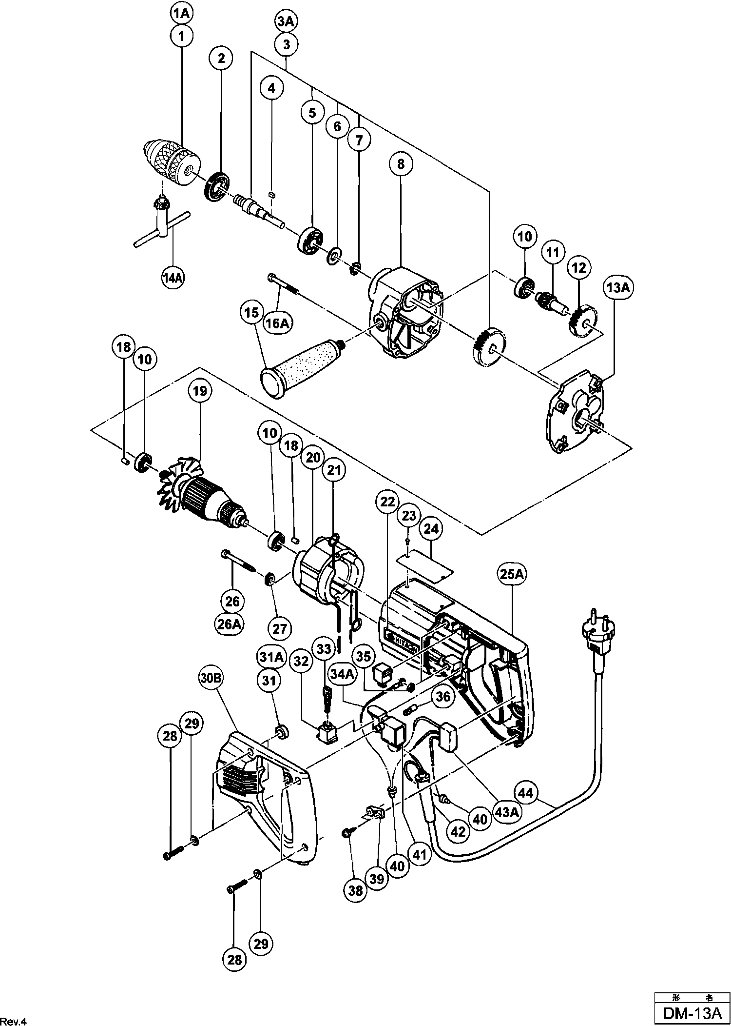 Liste de pièces de rechange des Hikoki DM-13A