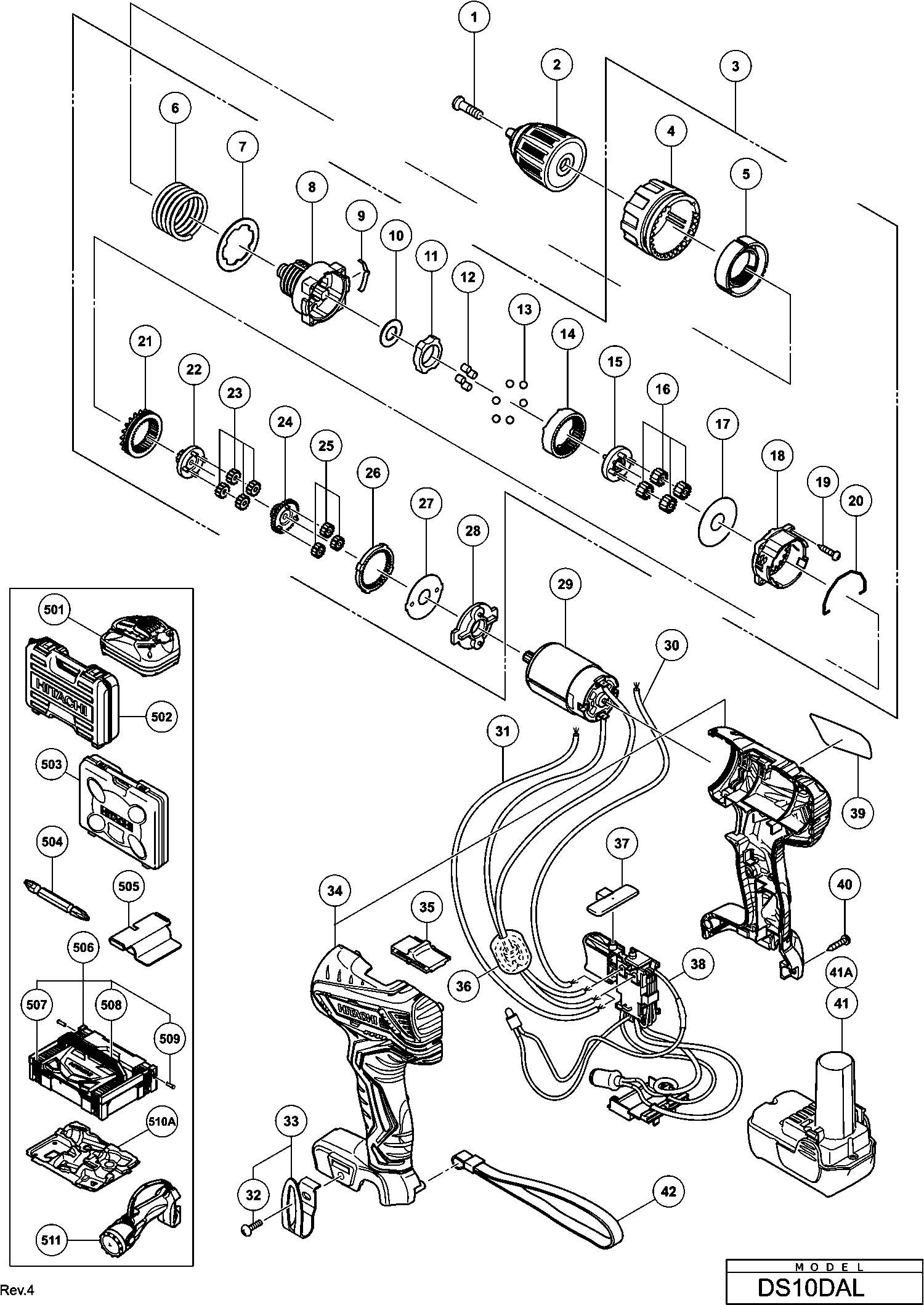 Vous trouverez ici toutes les pièces et dessins disponibles du 'Hikoki DS10DAL'. De là, vous pouvez commander directement toutes les pièces souhaitées. De nombreuses pièces doivent être commandées auprès du fabricant, selon la marque, cela prend une à quatre semaines. Toutes les informations dont nous disposons se trouvent sur notre site Web, nous ne pouvons pas vous conseiller sur ce dont vous avez besoin, pour cela vous devrez retourner la machine pour réparation. Veuillez noter ce qui suit lors de la commande: