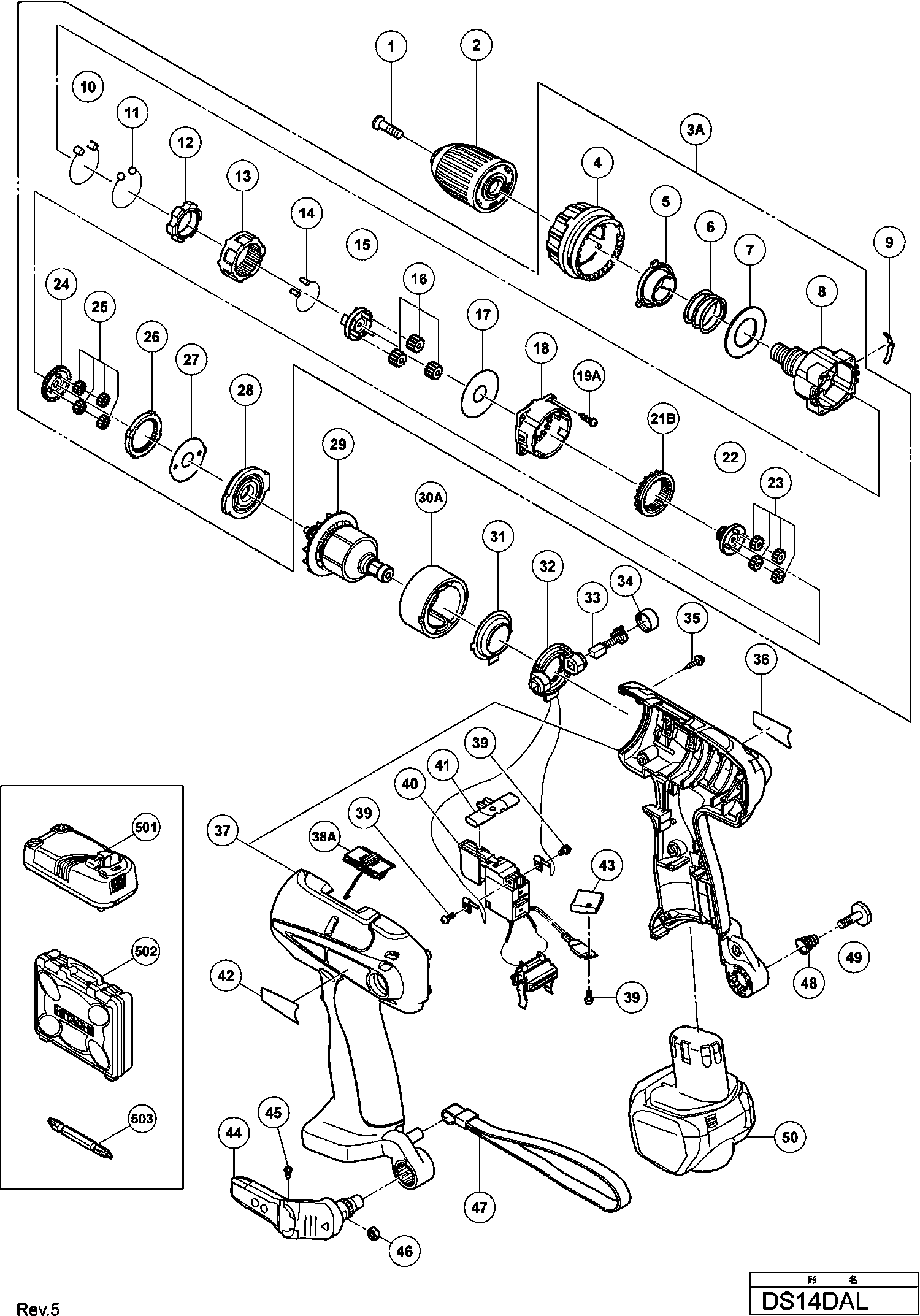 Liste de pièces de rechange des Hikoki DS14DAL