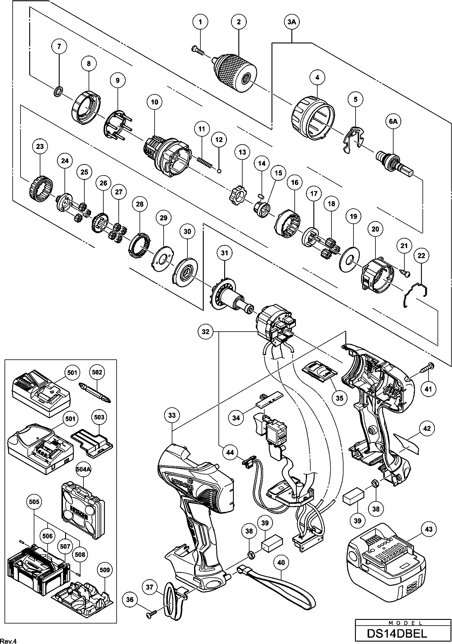 Liste de pièces de rechange des Hikoki DS14DBEL