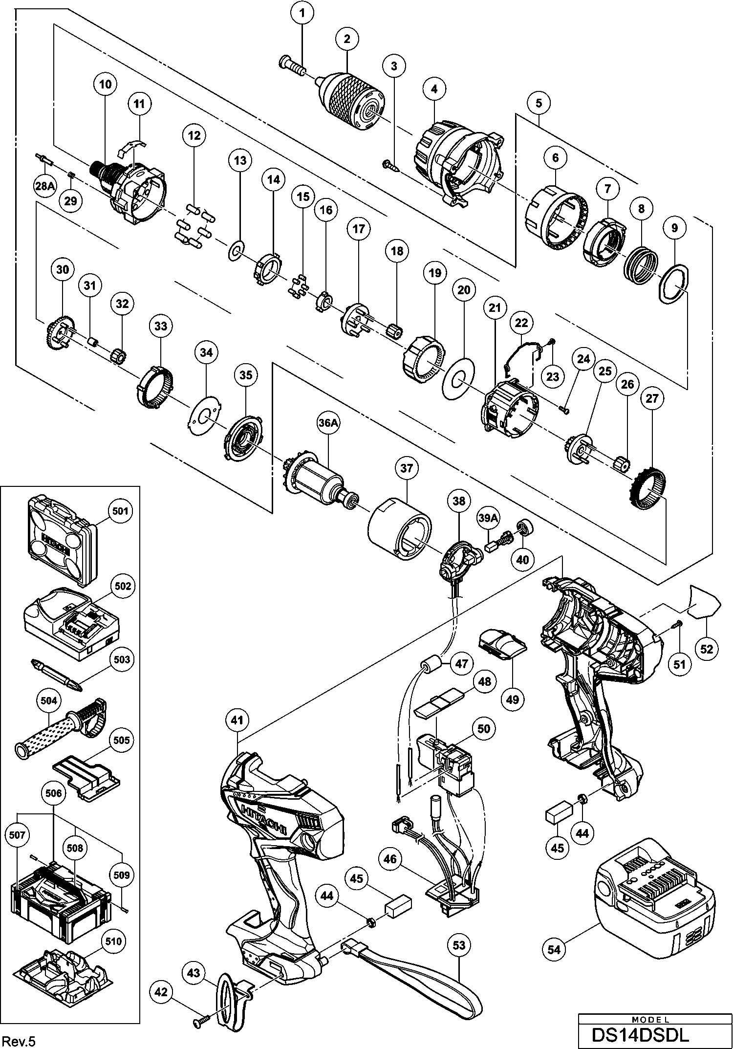 Liste de pièces de rechange des Hikoki DS14DSDL